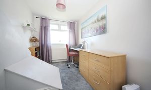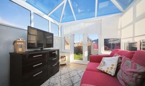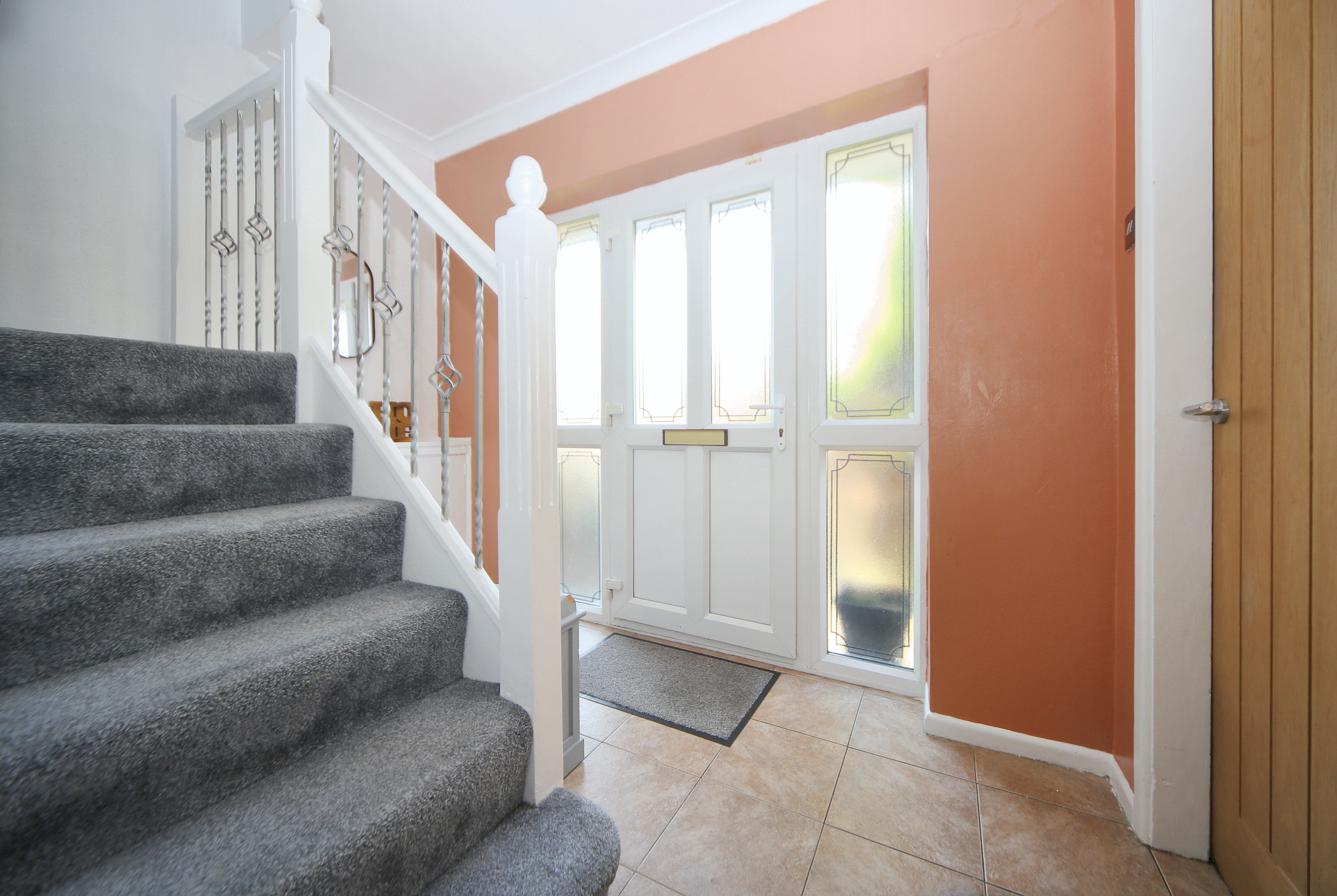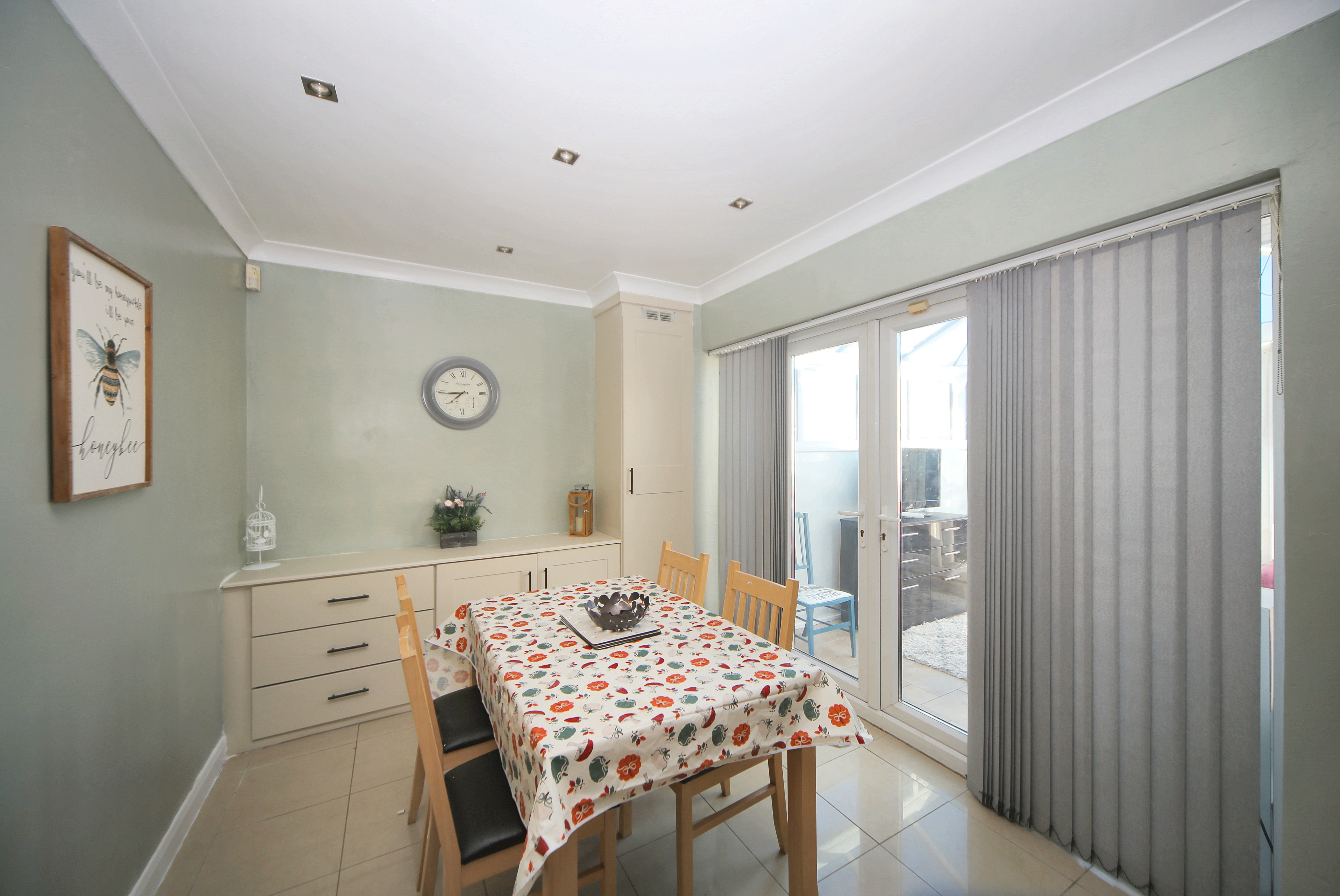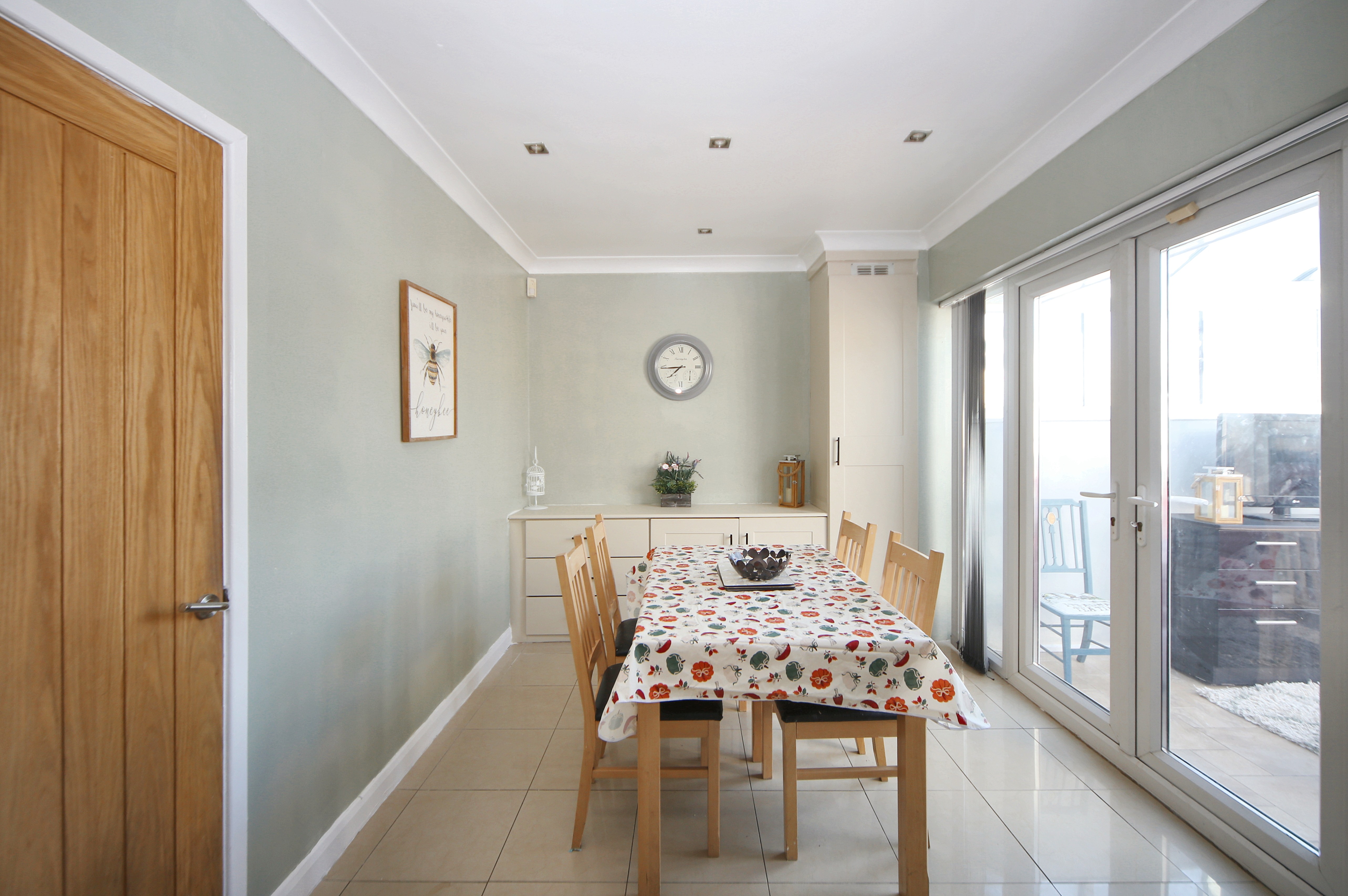 Internally, the accommodation is arranged over two floors. The ground floor comprises a welcoming entrance hallway, a family bathroom, a generous lounge, a separate dining room, and a fitted kitchen complete with integrated appliances. A bright and airy conservatory overlooking the rear garden completes the ground-floor layout.