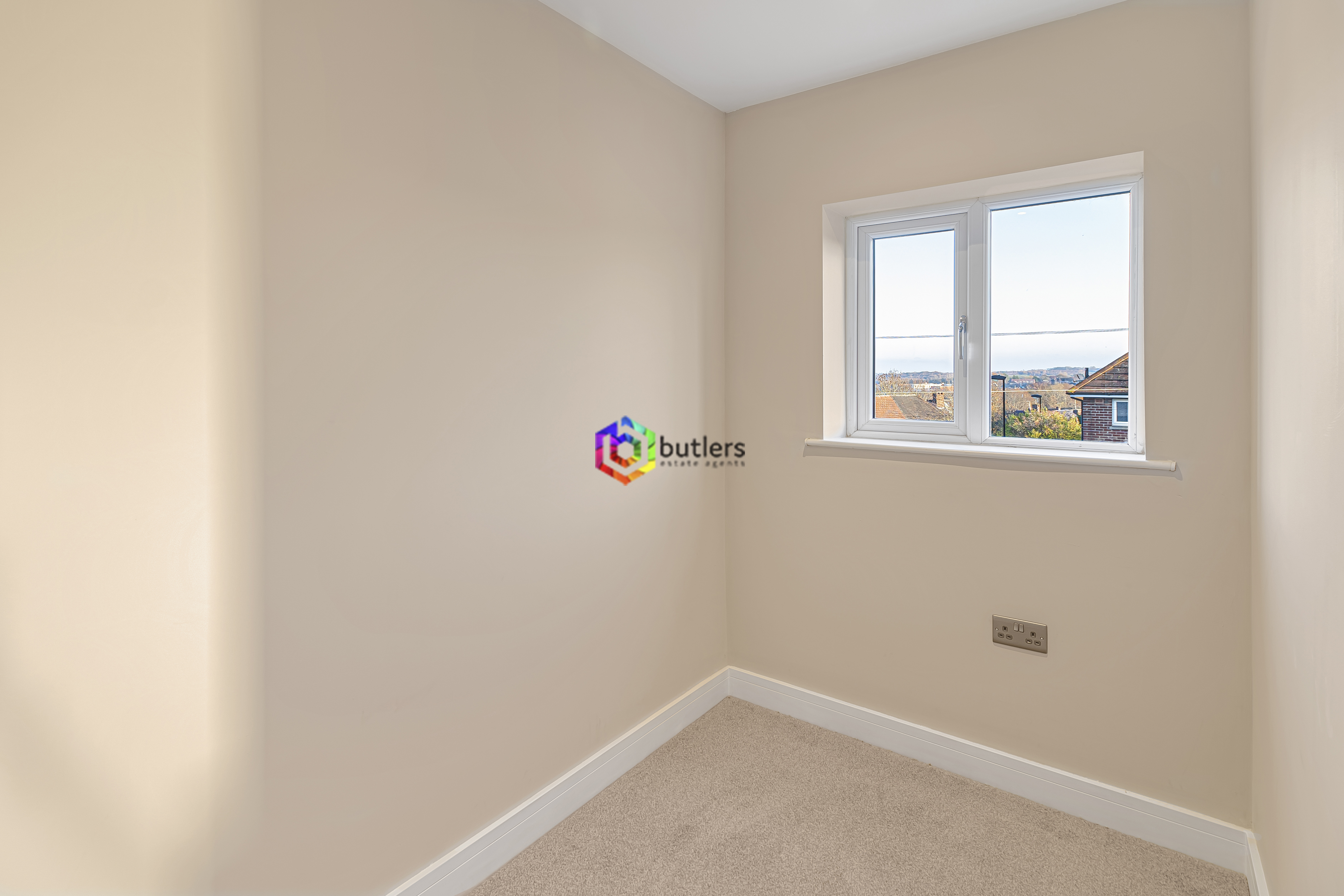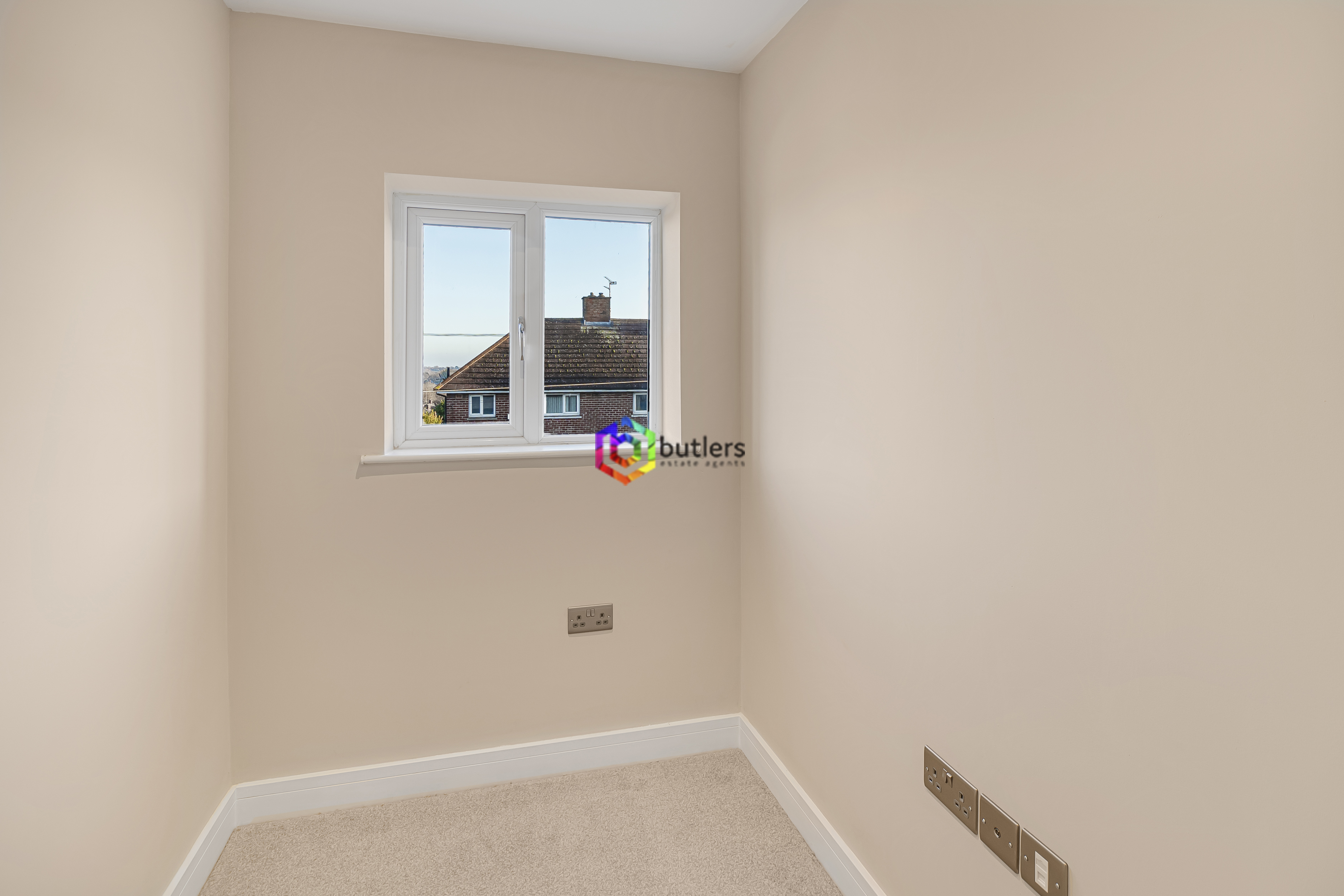 This single bedroom could be used as a nursery or an office and has a front facing window
