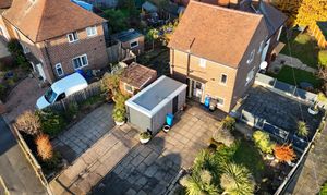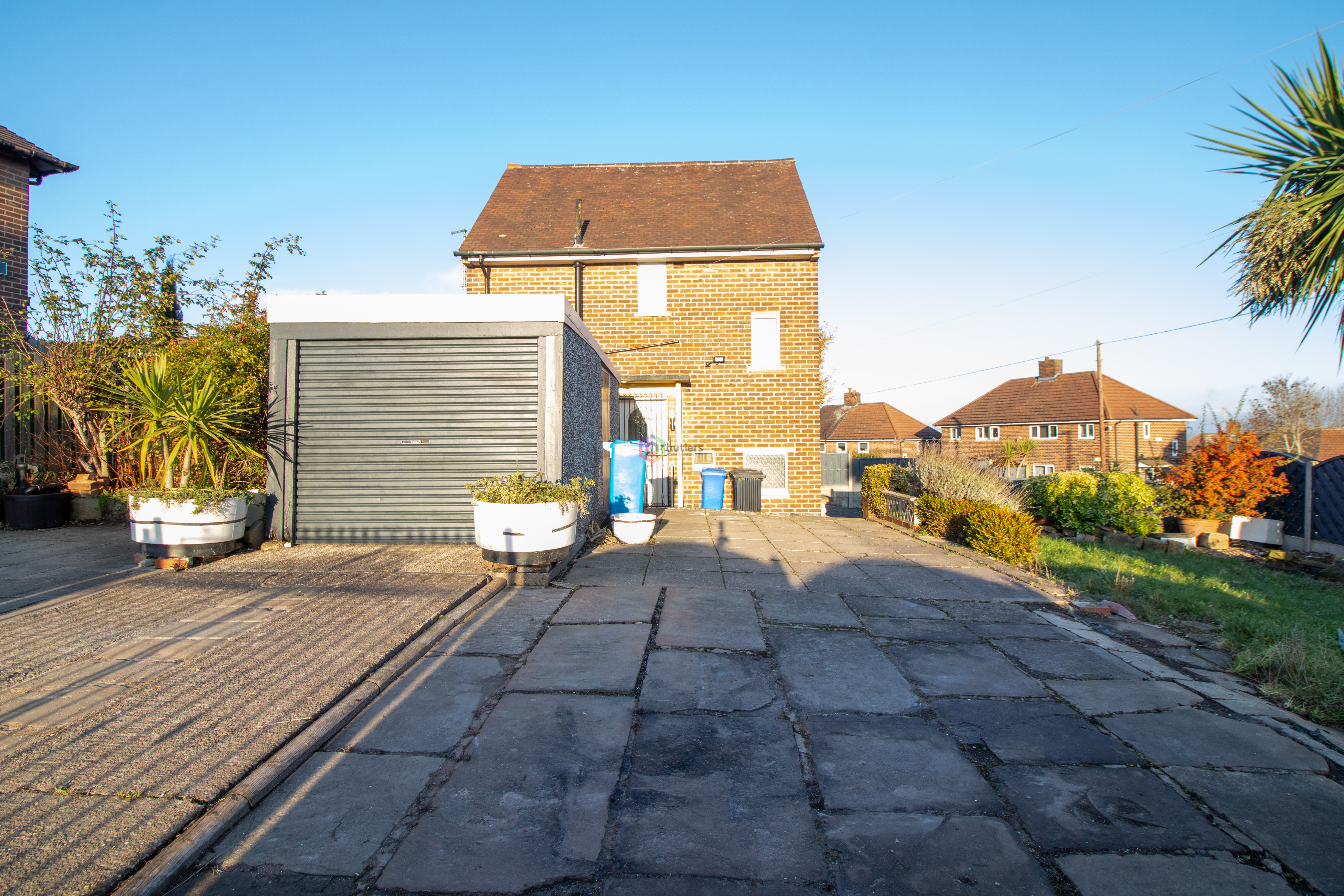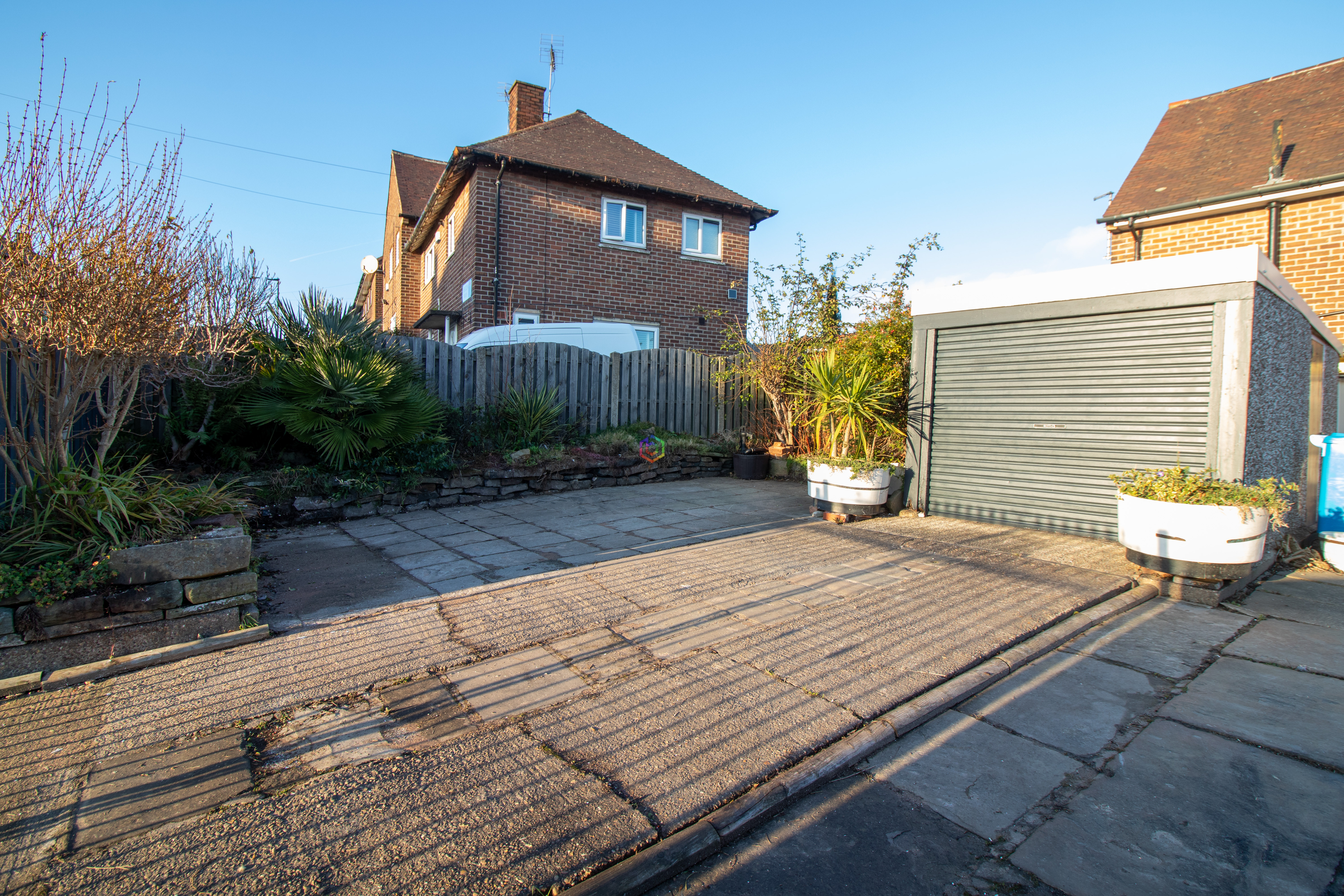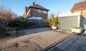 Parking for at least three vehicles on the hardstanding areas of the corner garden plot.
