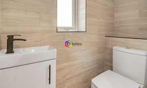 Upstairs, there are three bedrooms, each finished with brand new decor and flooring. The bedrooms offer flexibility for use as sleeping quarters, a home office, or a nursery, depending on the needs of the new owners. The brand new bathroom is fitted with modern fixtures and fittings, including a contemporary suite, sleek tiling, and quality finishes.