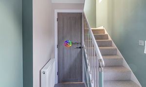 The entrance door leads you into the hallway with its modern decor and an understairs room which houses the boiler , a great place to store your hoover etc