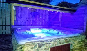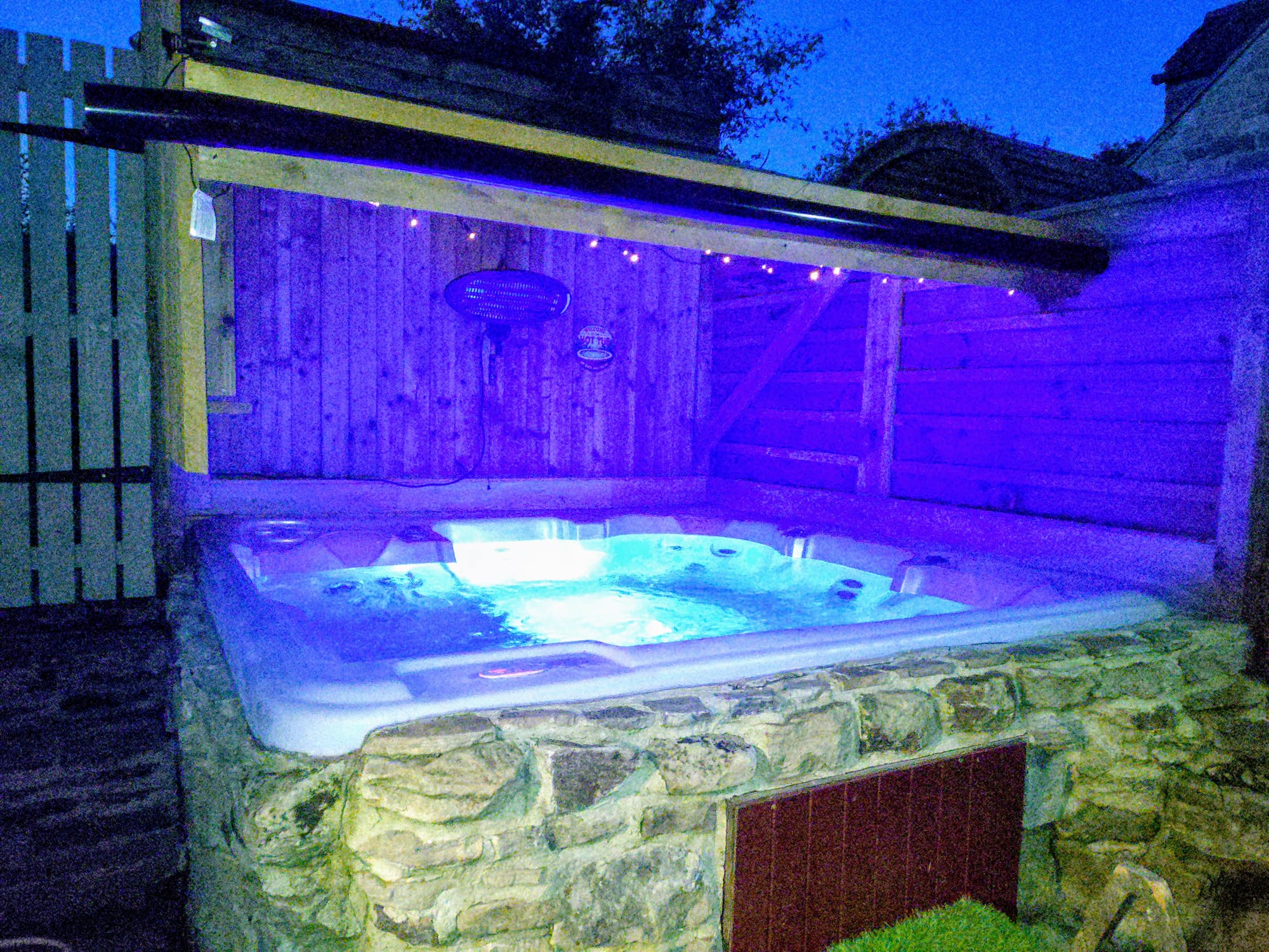 - Spacious North facing garden which is divided in the two distinct areas - The first area is accessed internally via a wooden stable style door from the kitchen, and externally via a wooden pedestrian gate positioned to the Western side of the property - The first area of the garden is laid to a mixture of patio stone and artificial turf, and houses a storage shed, and built-in hot tub which is a feature of the outdoor space - Two outside taps - Three outdoor power sockets - The second area of the garden is accessed up five step stone steps from the first area and is bordered by stone walls to the Northern, Eastern, and Western sides - Laid to paved stone and artificial turf with a raised wooden planter to the North-Eastern side - Ample space for outdoor furniture - Storage shed - Log store