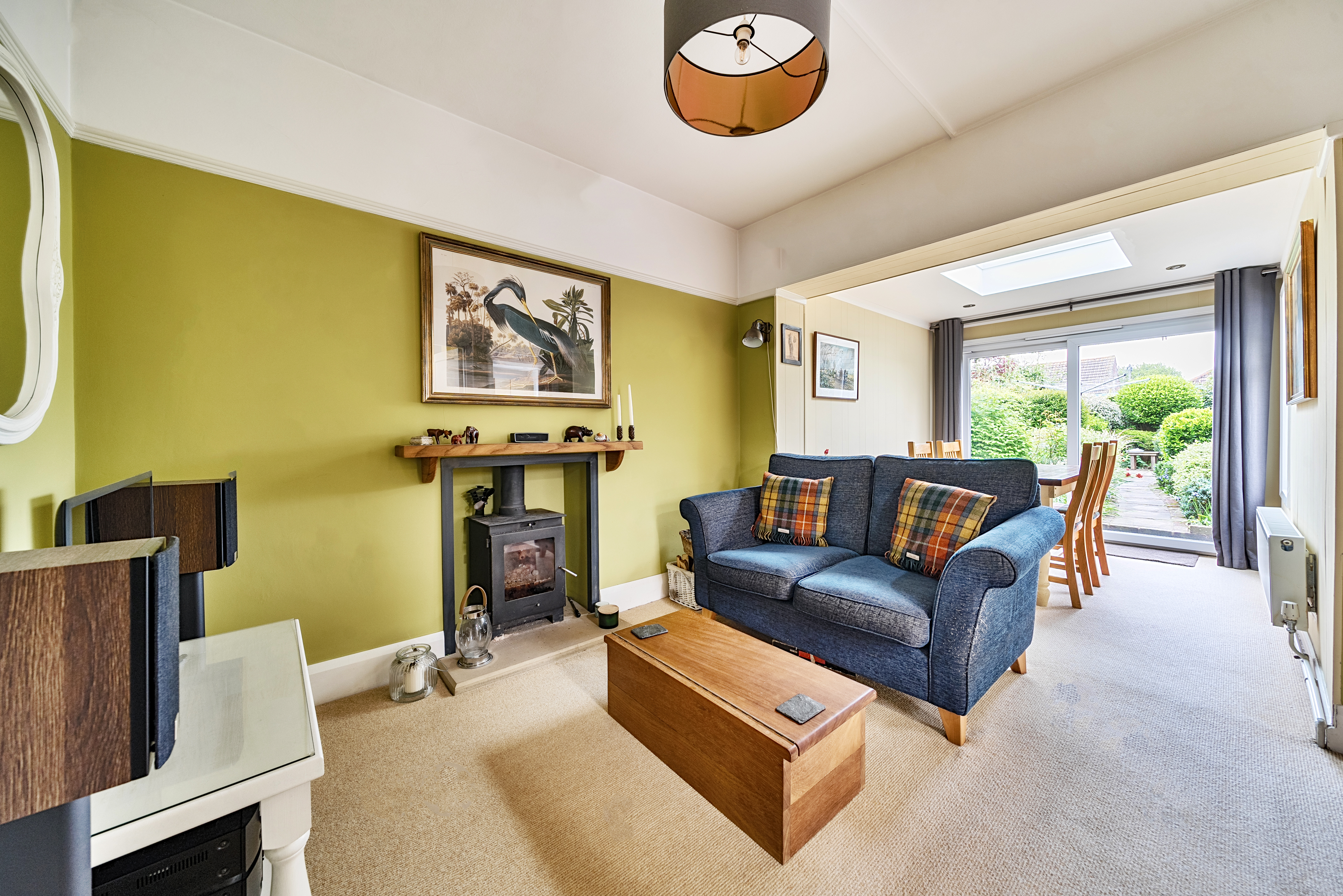 Upon entering, you are welcomed by a spacious entrance hall that leads effortlessly into the formal lounge, complete with a large bay window and a cosy log burner. To the rear, the generous dining/family room enjoys an abundance of natural light, courtesy of a skylight and double doors opening onto the garden. Nearby, the well-appointed kitchen offers ample cupboard space, an integrated dishwasher, and a practical layout perfect for modern living. There is also a versatile study, which could easily serve as a third bedroom, alongside a stylish and impressively large bathroom.