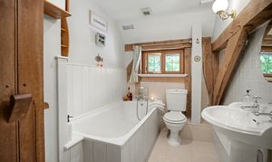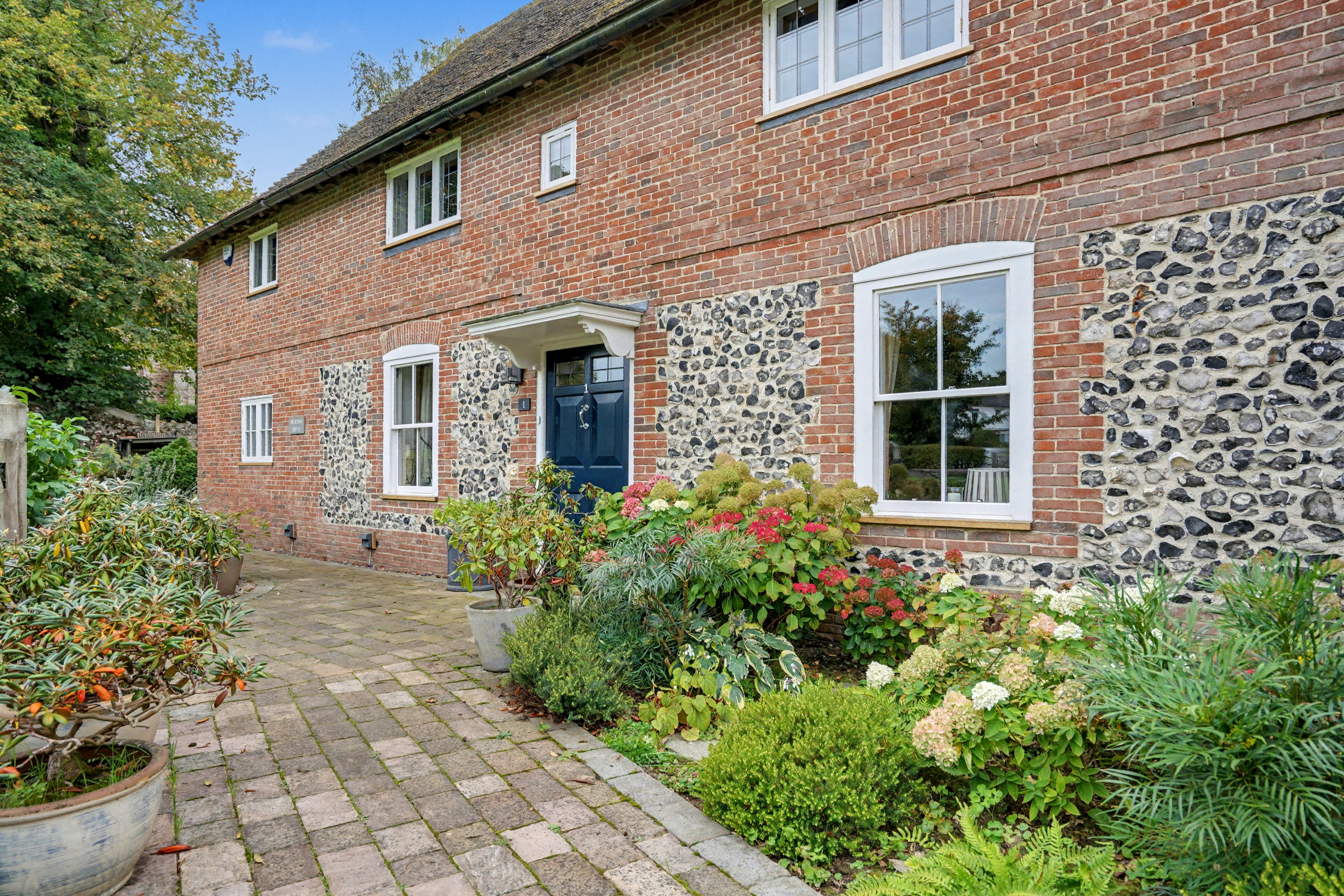 Tucked quietly behind the 14th-century All Saints Church, 1 Church Green sits at the heart of the Upper Street Conservation Area — arguably Hollingbourne’s most historic quarter — a setting scarcely touched by time and nestled within one of the most stunning parts of the Kent Downs National Landscape, with endless paths right on the doorstep and a thriving village community close at hand — complete with a junior school, a welcoming community café, several renowned local pubs, and active village groups that bring residents together. The home appears to have grown from the landscape itself; its mellow brickwork, hand-cut oak timbers, and clay-tiled roof rest in gentle harmony with the neighbouring church and the old Kentish ragstone walls that encircle them.
