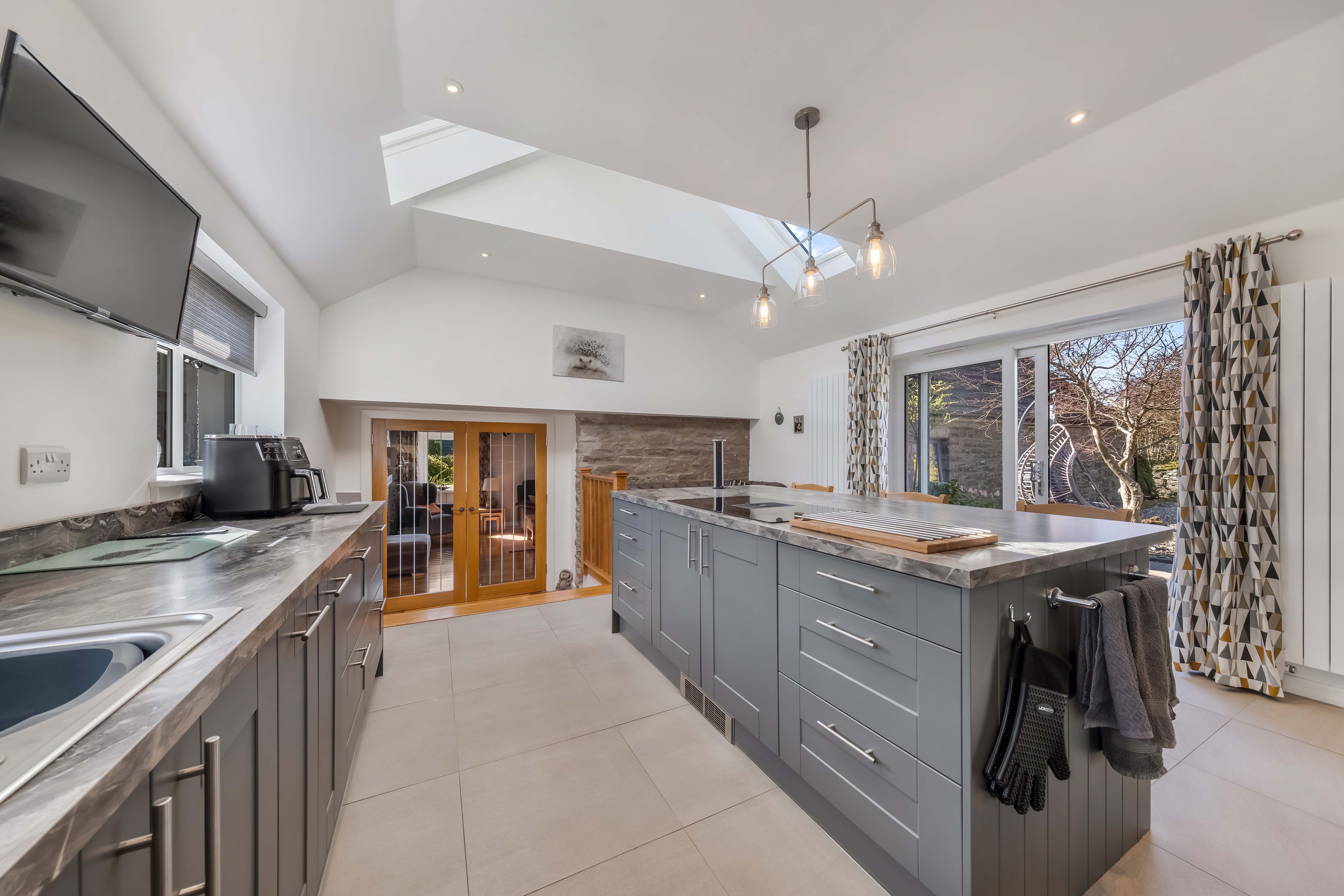Julia Crawford of REMAX is delighted to bring to the market this truly unique property. From the moment you arrive at this enchanting three-bedroom detached stone cottage, you know you are about to discover something truly special. Nestled in a dreamy location that perfectly blends rustic charm with modern comforts, this rarely available home boasts a wealth of character features including striking beamed ceilings and a welcoming slate fireplace with multi-fuel stove that forms the heart of the inviting lounge. The property is presented in immaculate, move-in condition, offering generous room sizes throughout that cater to both family living and entertaining guests. The modern dining kitchen is a chef’s delight, thoughtfully designed with contemporary finishes and ample space for family gatherings. A bright and airy sun room provides the ideal spot to relax and unwind, overlooking the beautiful gardens and flooding the space with natural light. Three well-proportioned bedrooms provide restful sanctuaries, each with views over the picturesque grounds. Energy efficiency is assured with the addition of solar panels, ensuring comfort and sustainability for years to come. Every detail of this home has been carefully considered, creating a harmonious blend of old-world character and contemporary style.