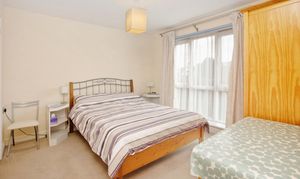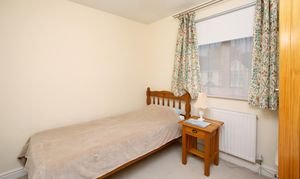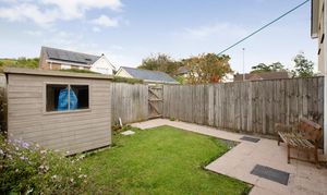 The rear garden is accessed from the dining area. There is a patio and lawn, with flower bed border, enclosed by brick wall and fencing. There is an outside tap and outside light and timber shed. A paved path leads around the side of the property to the front via a timber gate. A further timber gate at the rear of the garden accesses the two allocated parking spaces behind the property.