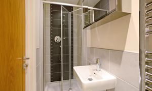 Ascending the stairs to the landing there is a loft hatch, airing cupboard with slatted shelving and electric heater and doors leading off to the bedrooms and bathroom. Bedroom one has a PVCu double glazed full height triple window to the front aspect, built in wardrobe and en-suite comprising tiled shower enclosure with glazed bi-folding door, low level WC and wall hung wash hand basin with mixer tap. There are partly tiled walls, a chrome ladder style radiator and kardean tile effect flooring. The two further bedrooms have uPVC double glazed windows to the rear aspect. The bathroom has a PVCu obscure double glazed window to the front and a panelled bath with shower over, wall hung wash hand basin and close coupled WC. There is a shaver socket, chrome ladder style radiator, partly tiled walls and Karndean flooring.