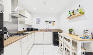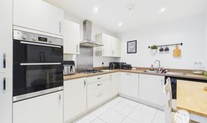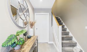 Upon entry, you are greeted by a welcoming hallway leading to the first floor. The modern lounge is a focal point, allowing the perfect space for the family to relax and having space for a dining area if required, whilst admiring views of the rear garden. French doors extend the living space outdoors to the rear garden, perfect for entertaining or relaxing al fresco. The well-appointed kitchen diner benefits from neutral base and eye-level units complemented by wood effect countertops and integral appliances. Ample space for a dining table makes it ideal for family meals or entertaining guests. Additionally, a convenient two-piece WC with utility space enhances the functionality of the ground floor.