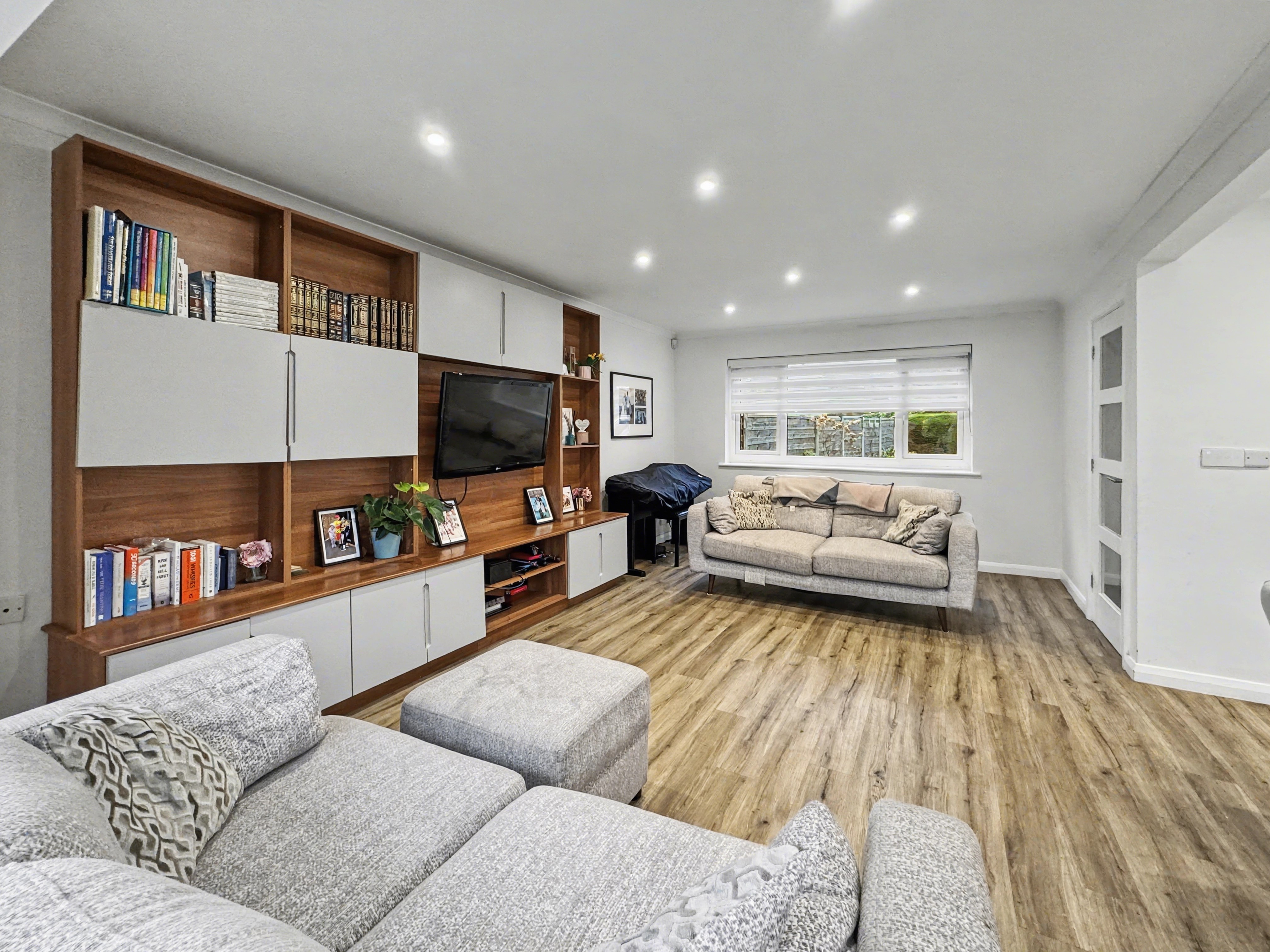 Outside, the substantial rear garden provides a wonderful area for families and outdoor living. To the front, a spacious driveway offers parking for four to five cars, all tucked away within a quiet cul-de-sac which adds an extra sense of peace and privacy.