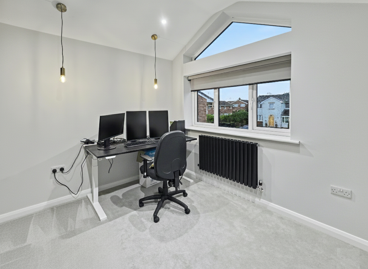 Upstairs, the property offers five well-proportioned bedrooms. Two benefit from en-suite facilities, with the principal bedroom also enjoying a walk-in wardrobe. A separate room, currently used as an office, provides additional flexibility to suit a variety of needs.