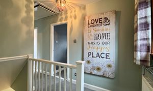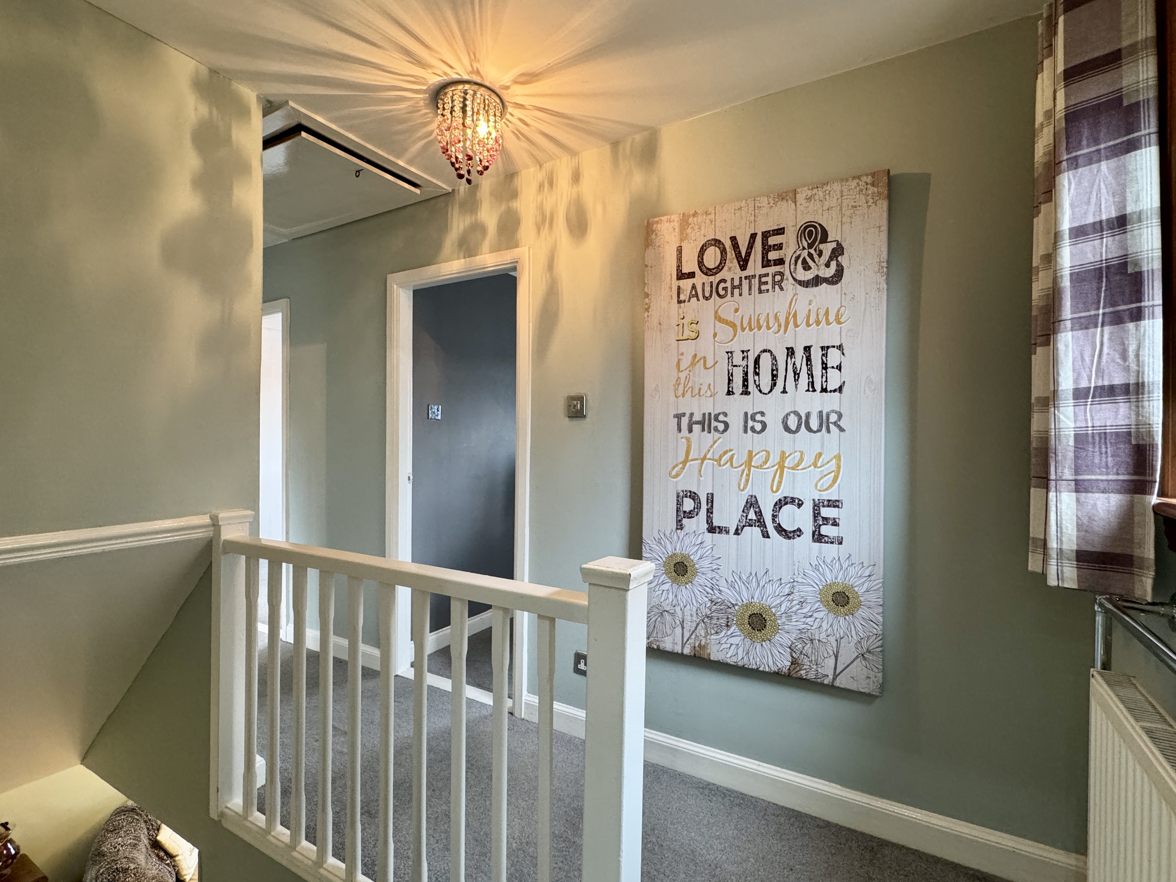 Ascend the stairs to find the upper landing revealing a large cupboard and access to the loft space.