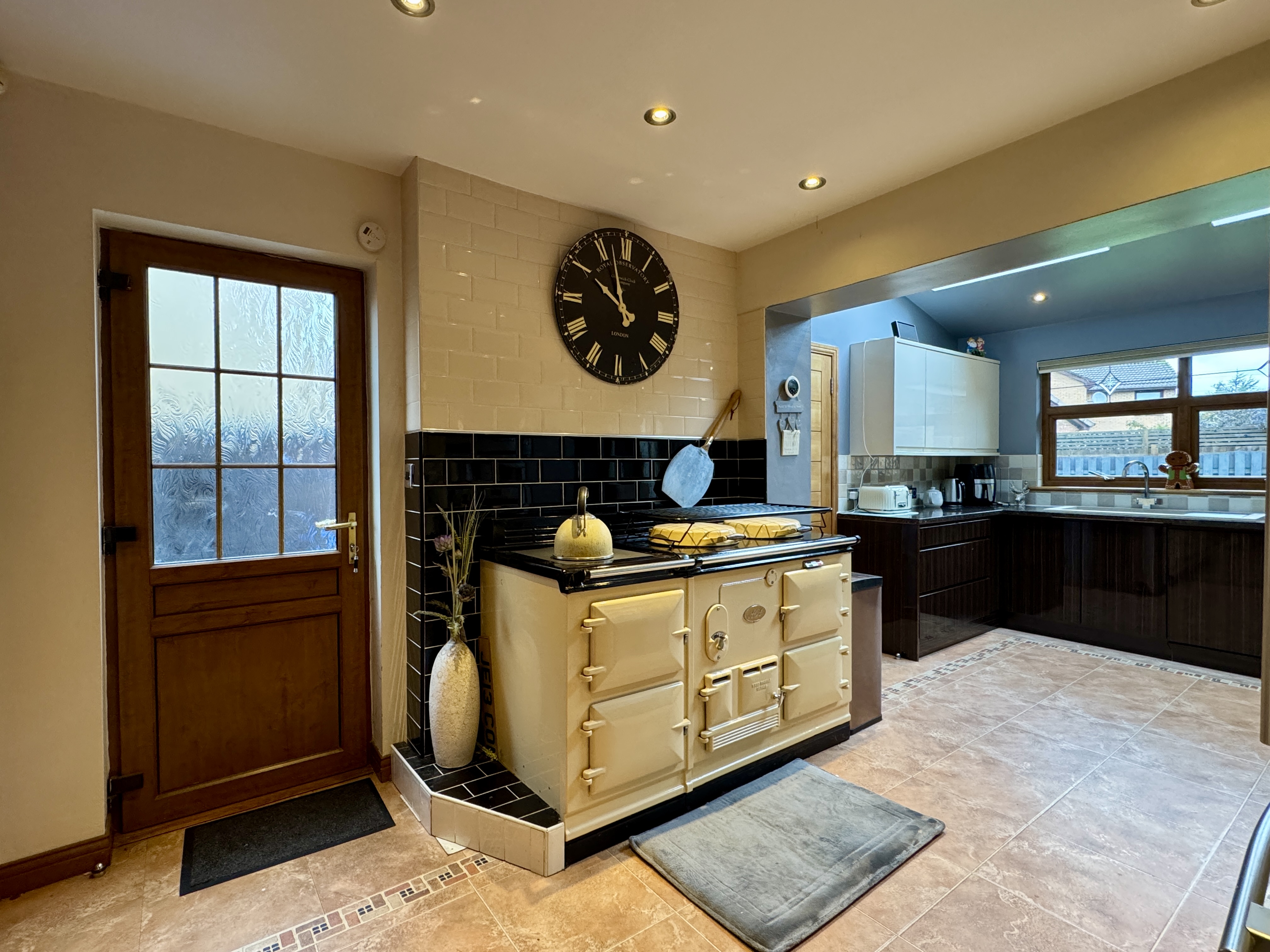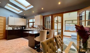 - Impressive breakfasting kitchen with integrated appliances including Siemens coffee maker, microwave, Aga 3 oven with matching Aga American fridge freezer and Bosch dishwasher