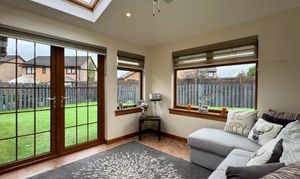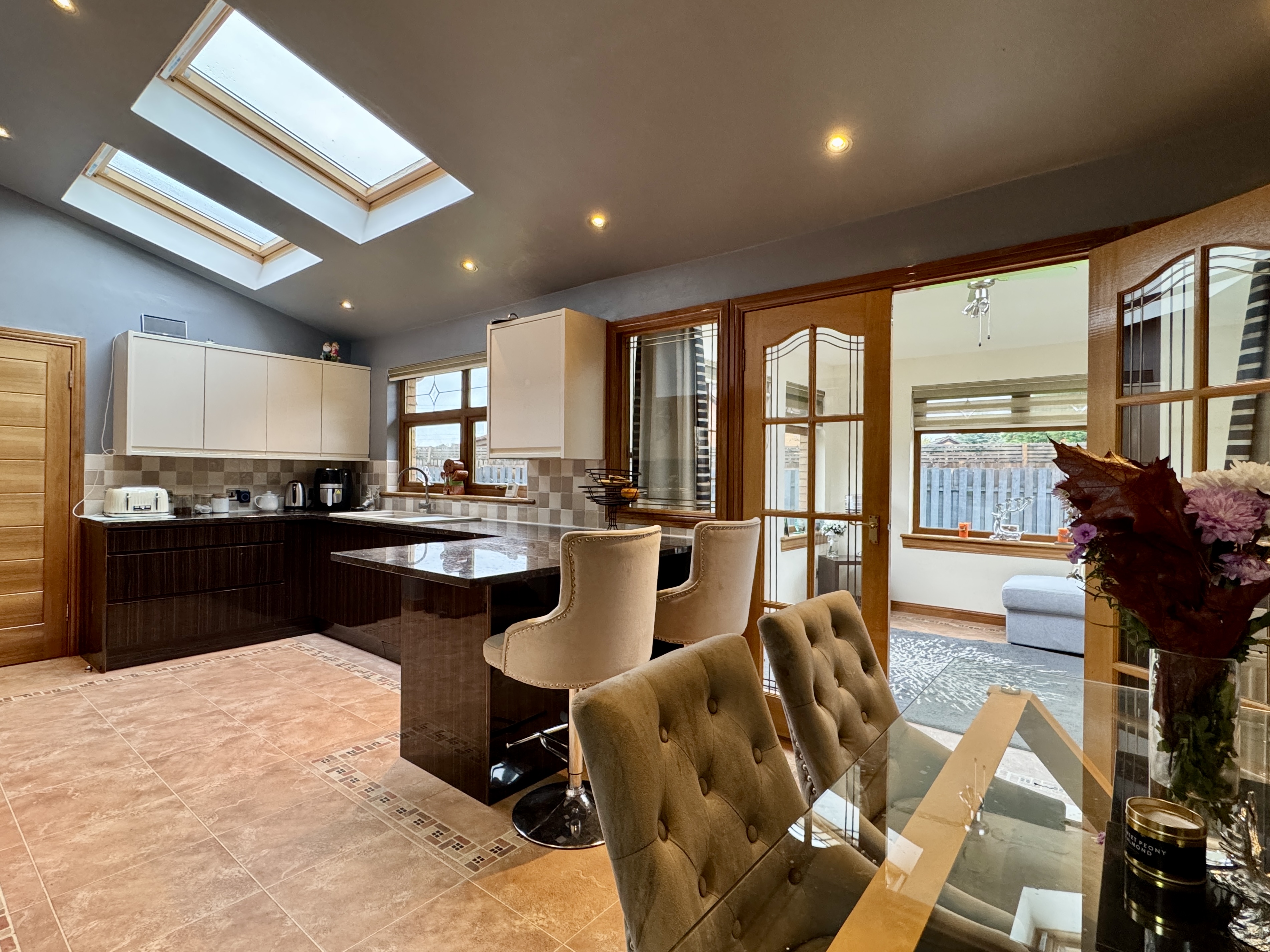 This beautifully presented and extended four-bedroom detached villa is situated in the tranquil setting of a quiet cul-de-sac within the highly coveted Morriston Park development in Cambuslang. The property offers a seamless flow of comfort and style throughout.