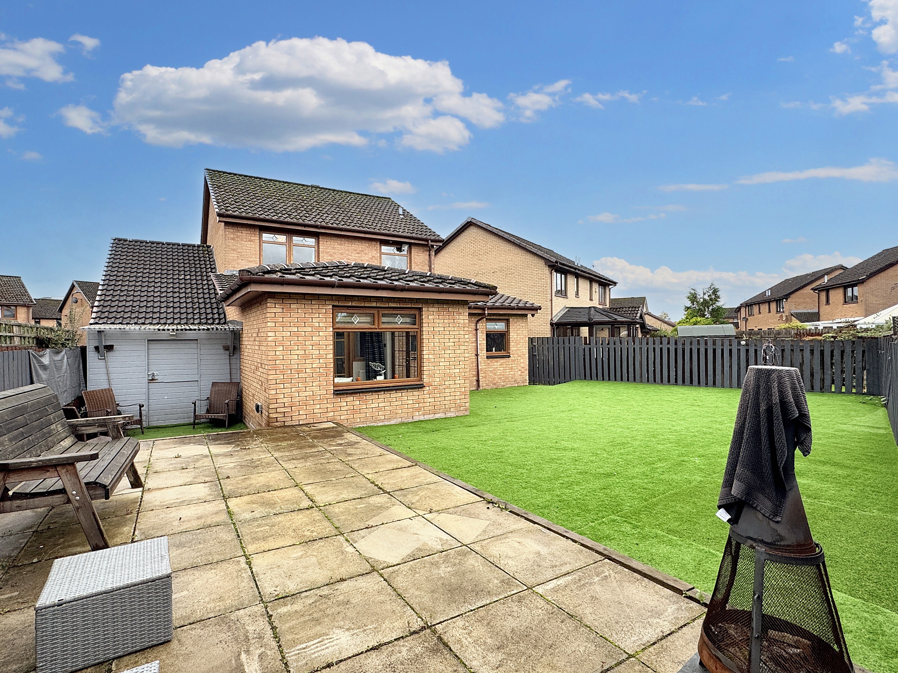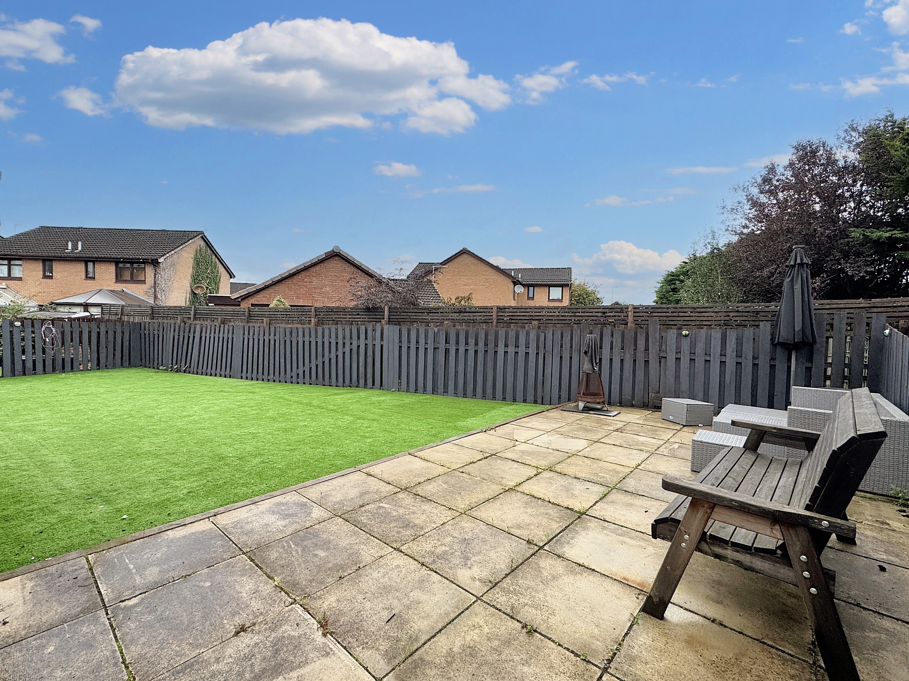 - Large back garden with patio area