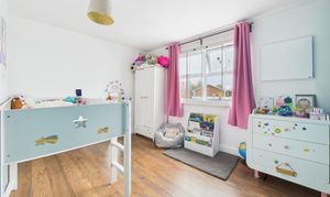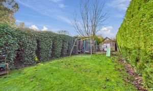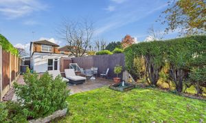 - Southerly-facing and generous rear garden with two patios, large lawn, mature borders and two sheds