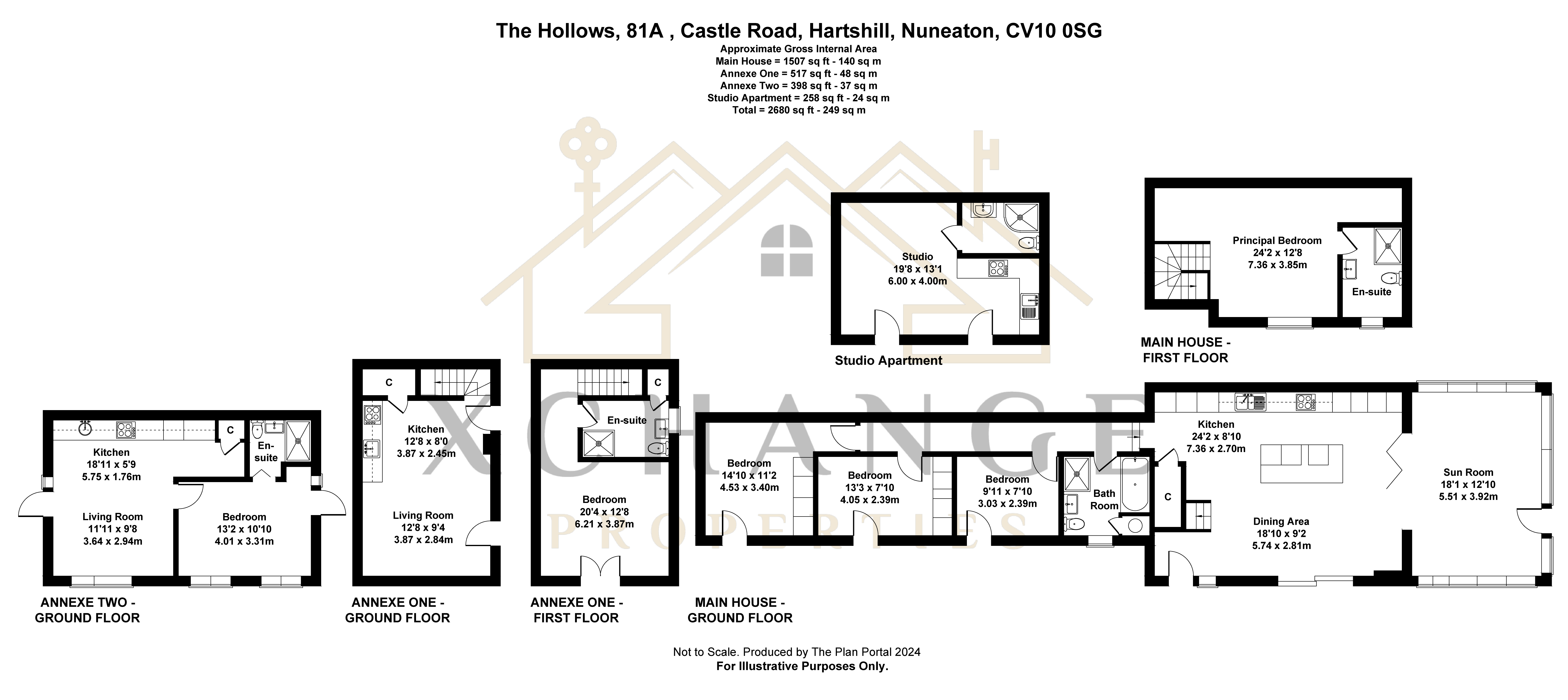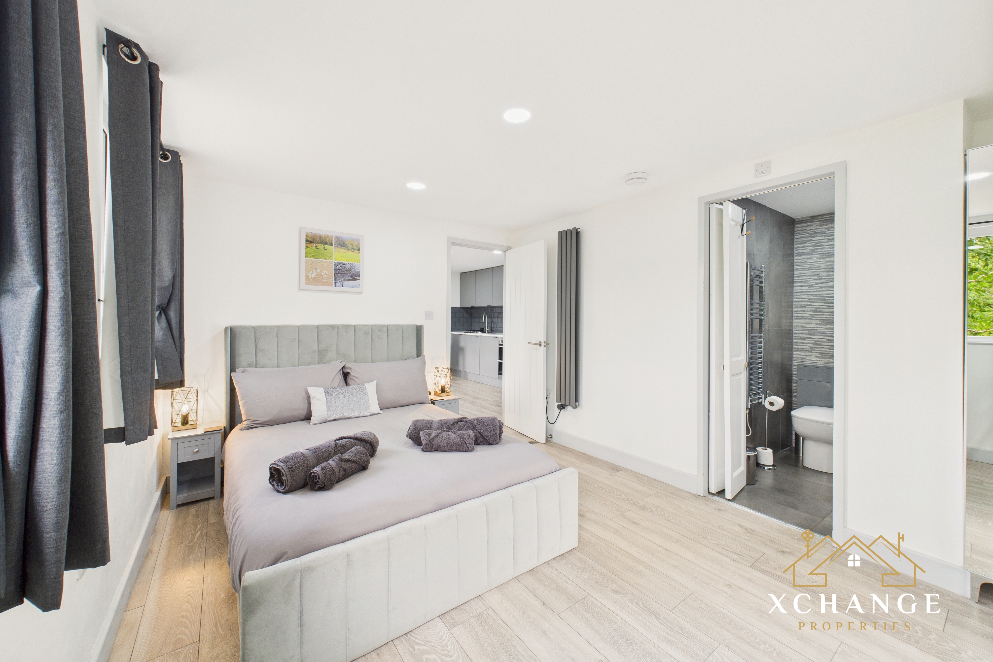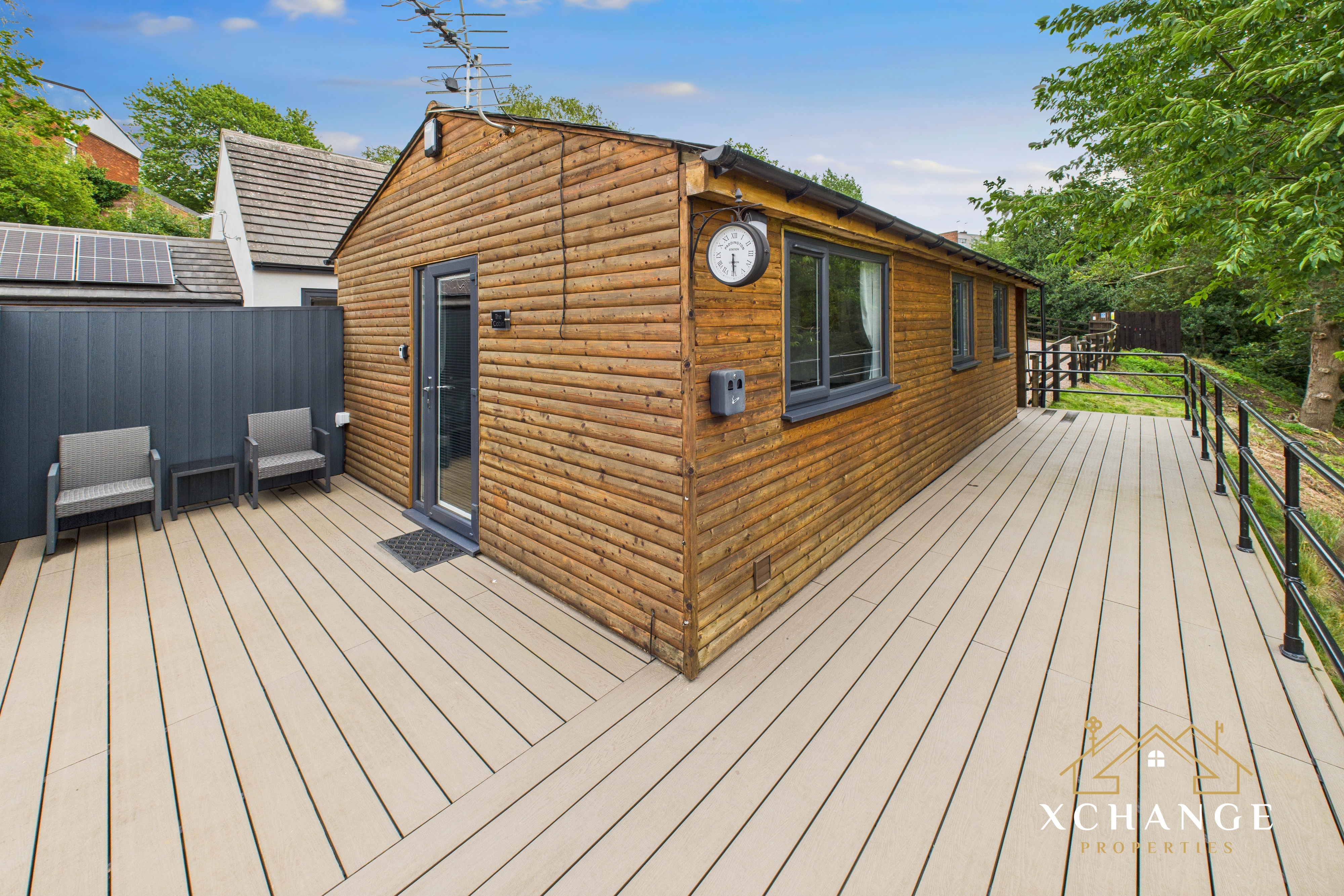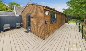Two one-bedroom annexes sit independently within the grounds, each with its own entrance, kitchen, bathroom, living space, and private decking—perfect for holiday guests, family members, or supported living arrangements. A newly completed self-contained studio apartment adds further flexibility and/or income, offering a modern kitchen, stylish shower room, and comfortable living space.
