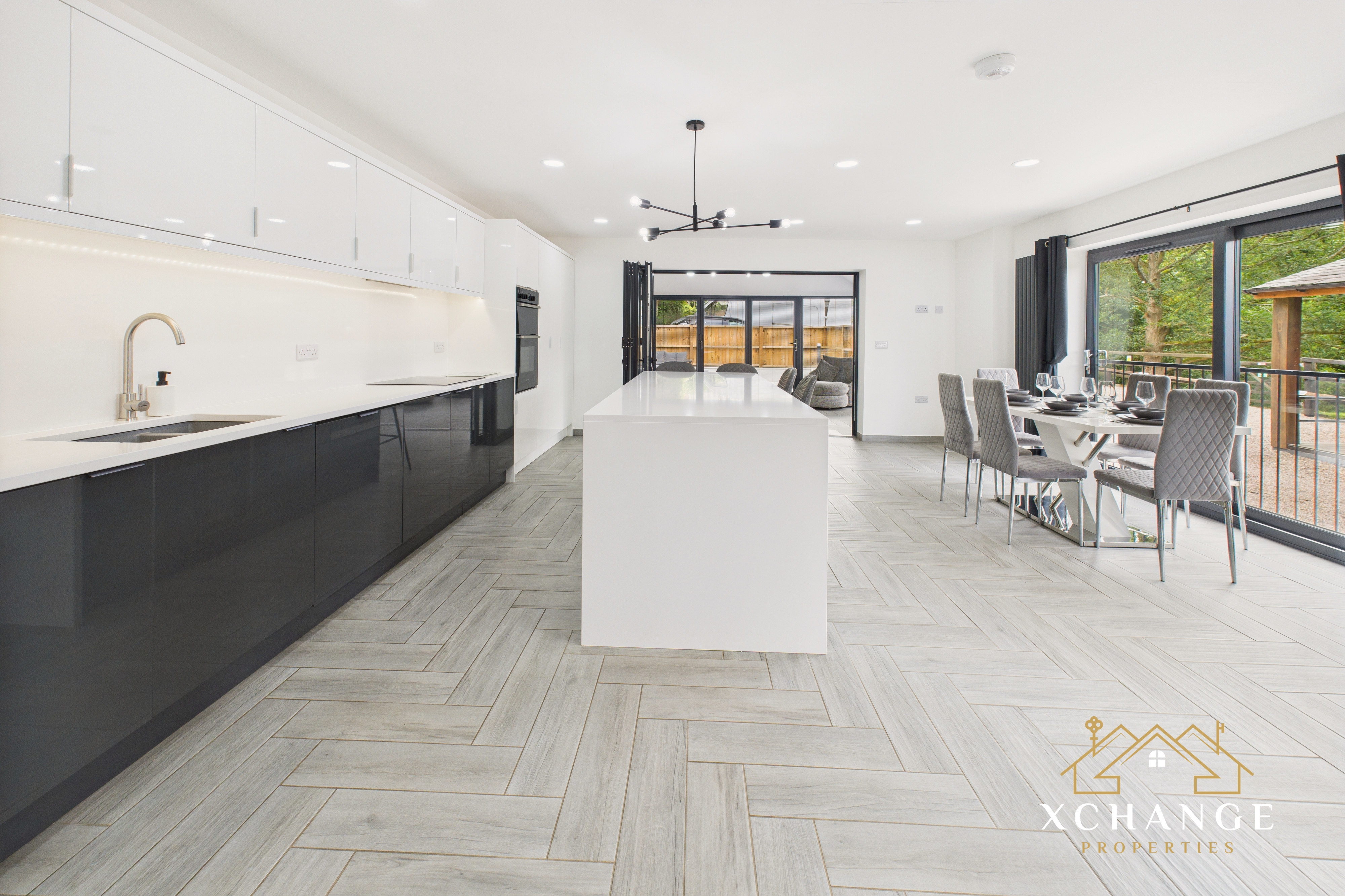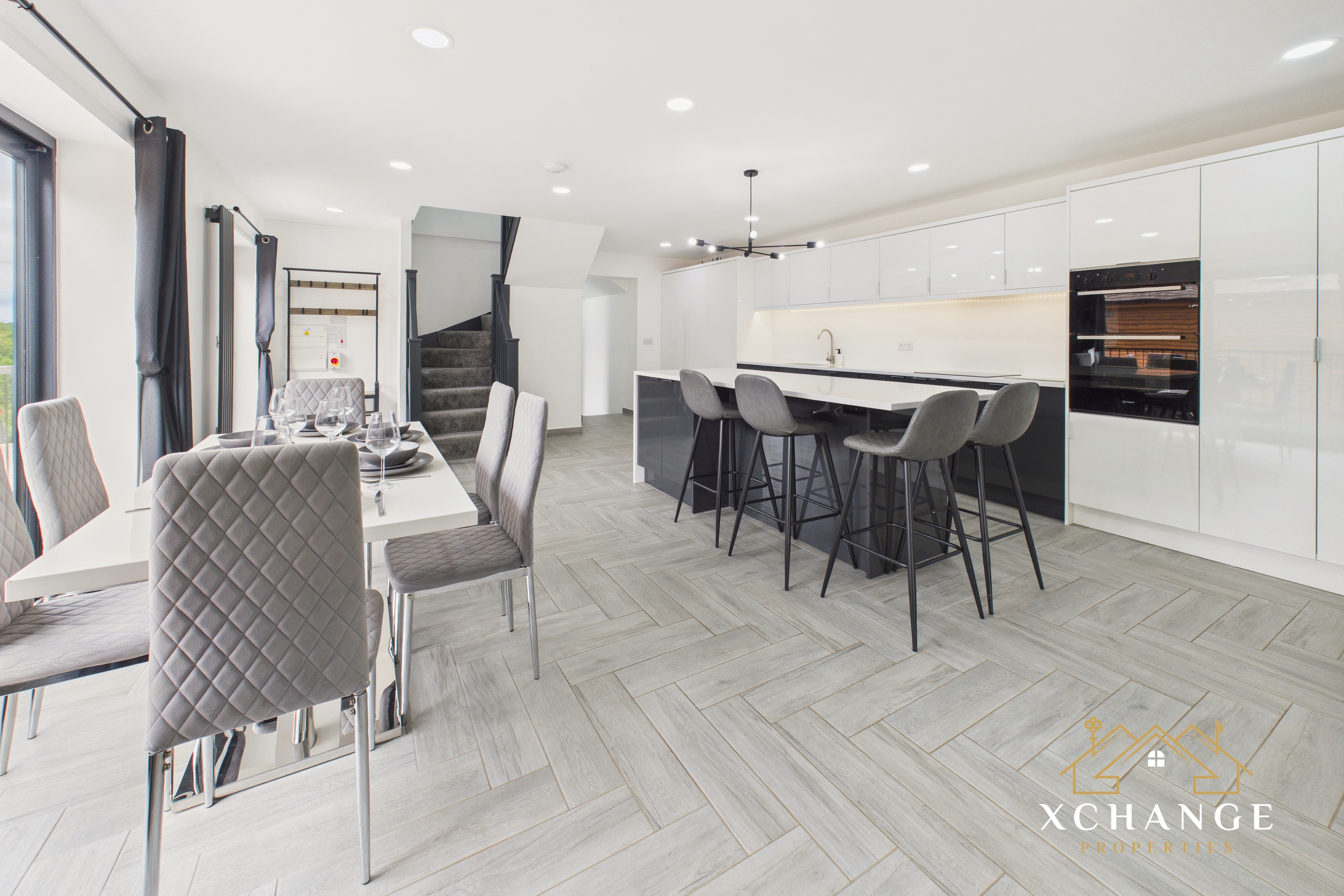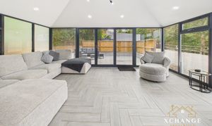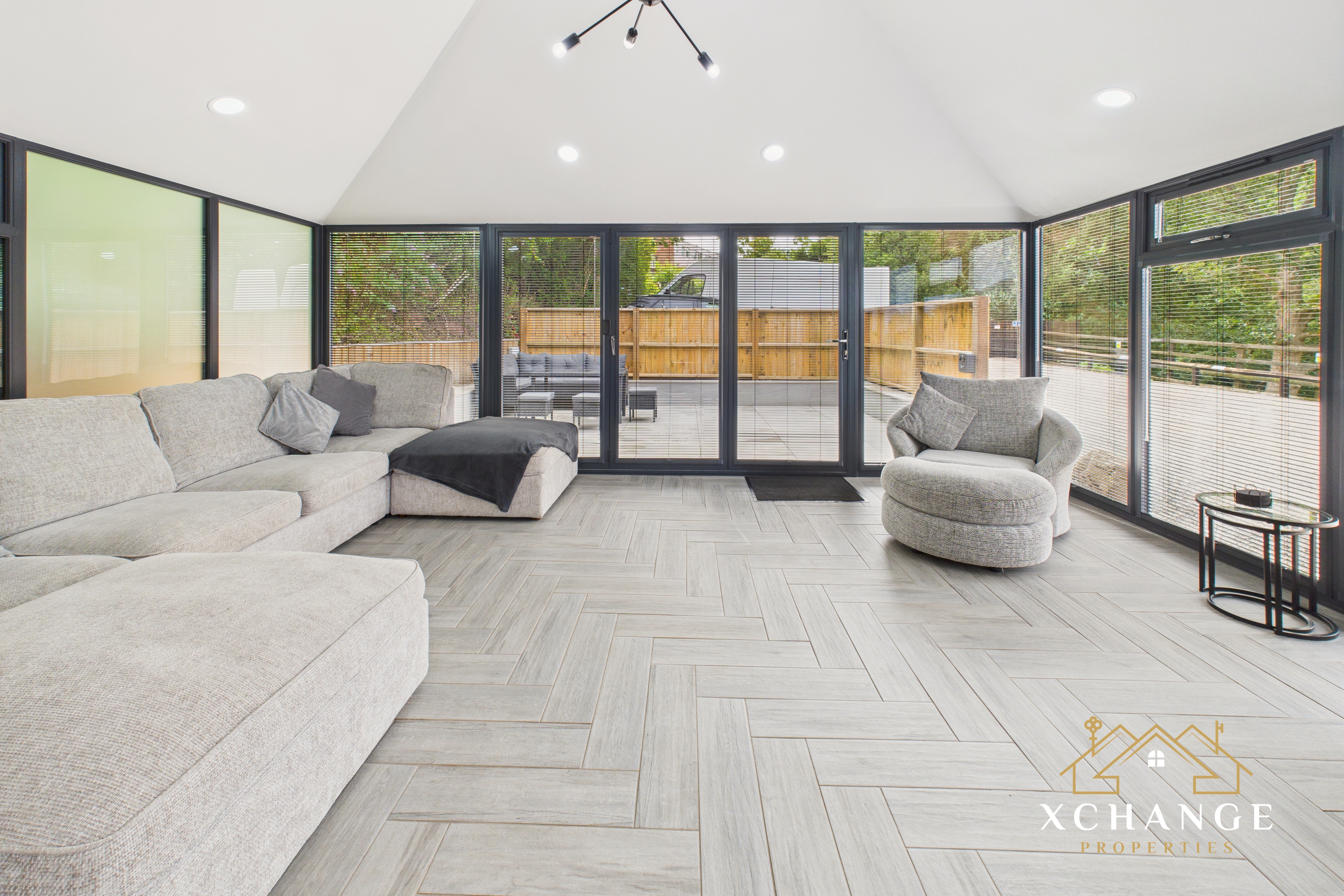 Step inside the main home to find a beautifully designed kitchen, breakfast, and dining area, complete with premium appliances: a full-height fridge and freezer, dual ovens, wine cooler, microwave, dishwasher, and electric hob. A stylish breakfast bar flows into the orangery via bi-fold doors, creating a bright, airy space perfect for entertaining or relaxing in comfort.