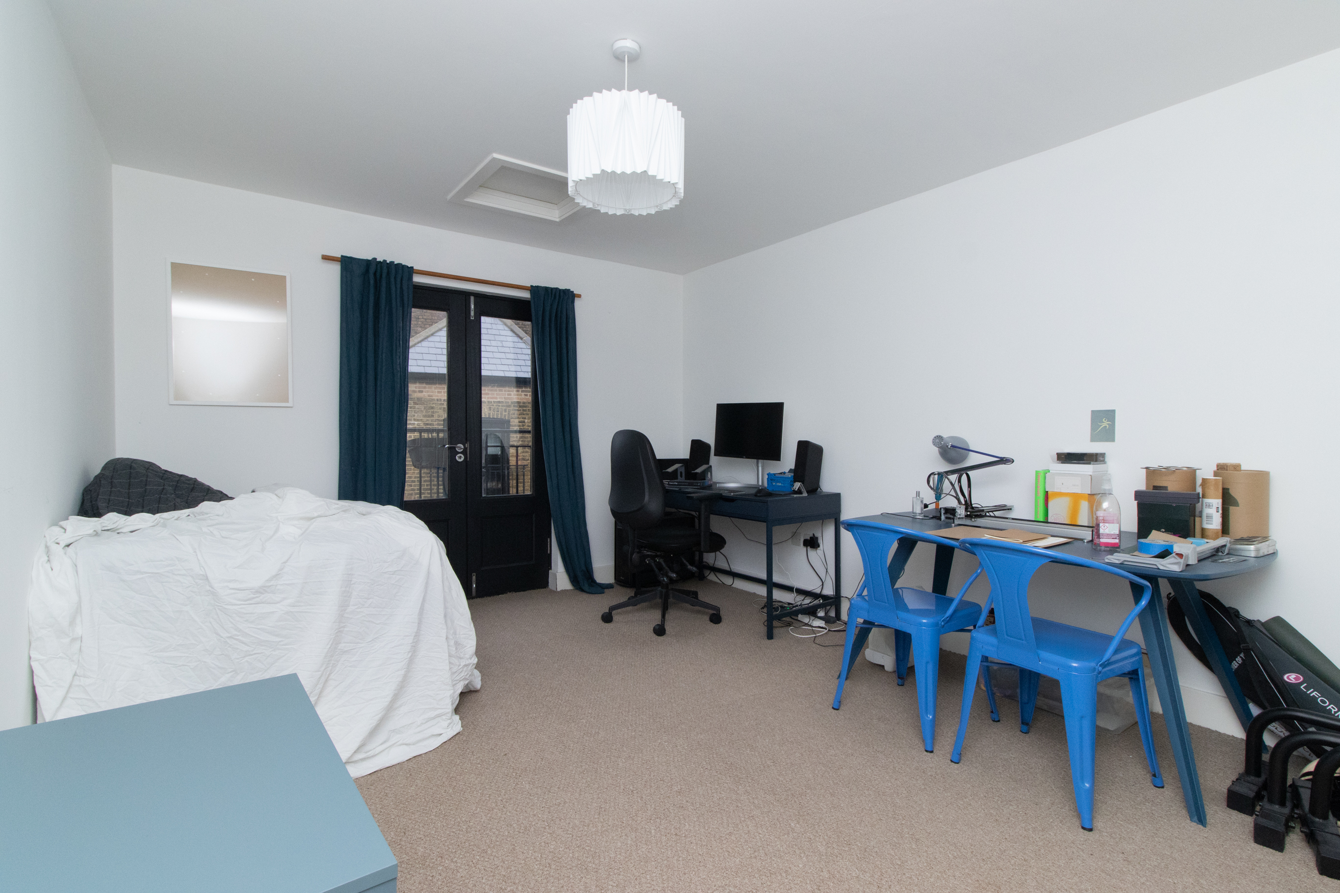 The accommodation consists of: an entrance hallway with WC; a kitchen with a generous range of wall and base units and integrated appliances; an open plan dining area, connecting to a lounge with french doors opening onto a small private patio. On the first floor there are two good size bedrooms, both with Juliet balconies, and a well-presented family bathroom with bath and shower above. The house is all-electric, with an independent radiator in every room.