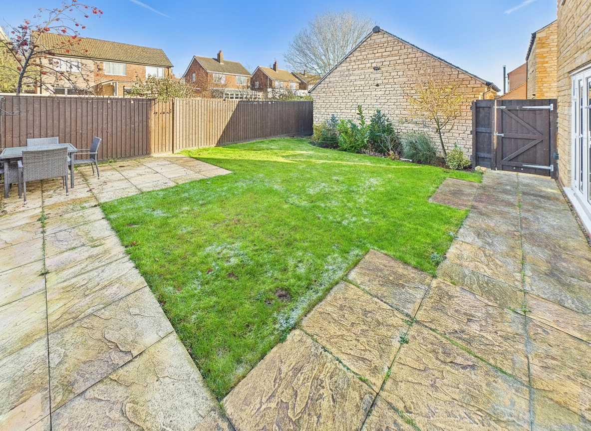 - Enclosed rear garden with lawn and patio, ideal for families.