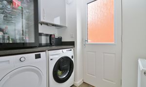 The adjoining utility room has a door to the side, fitted units and space for a washing machine and tumble dryer