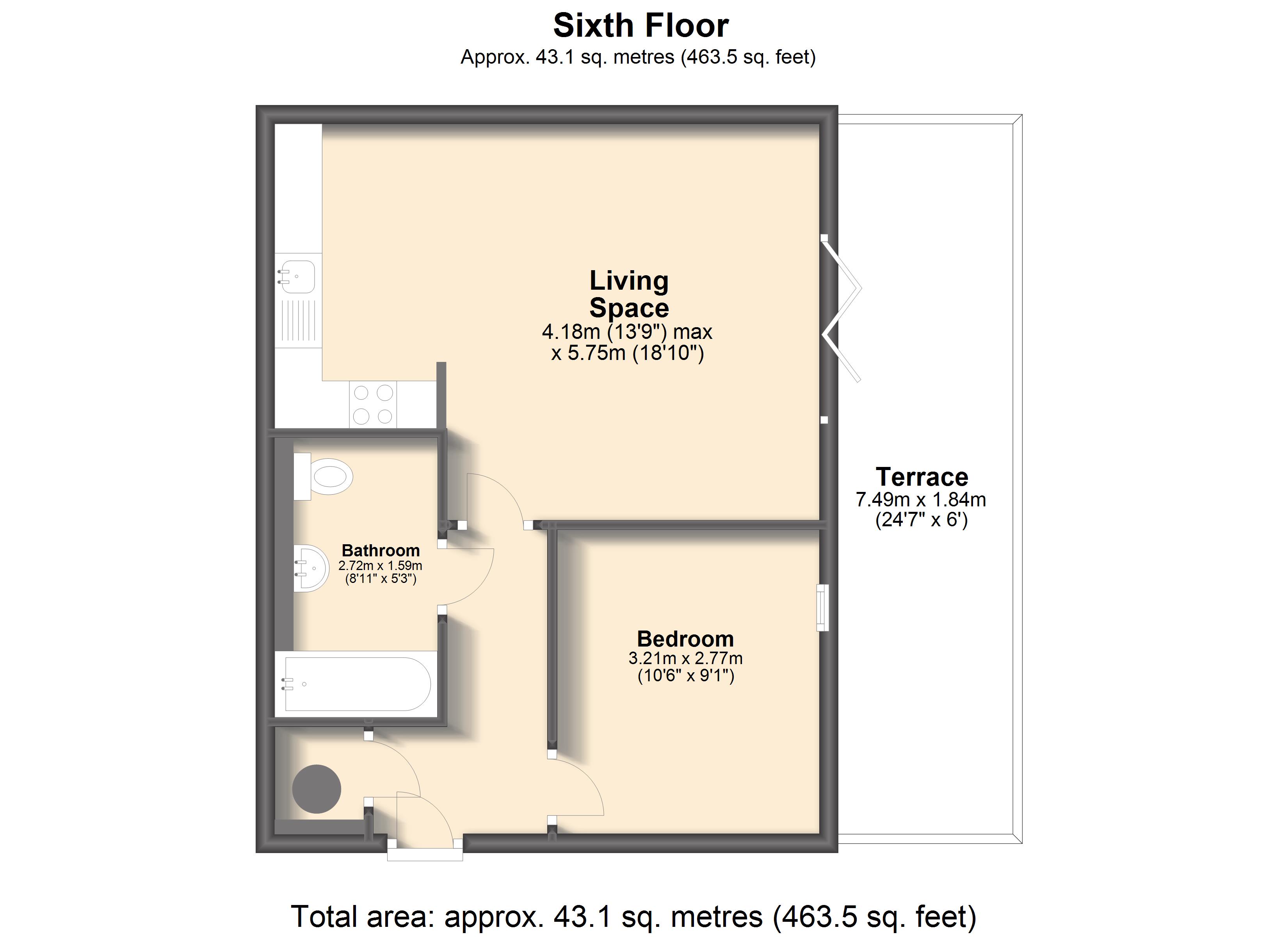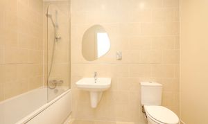 The bedroom is a well-proportioned double, offering sufficient space for both freestanding and fitted furniture. The accommodation is completed by a bathroom fitted with a modern three-piece suite.