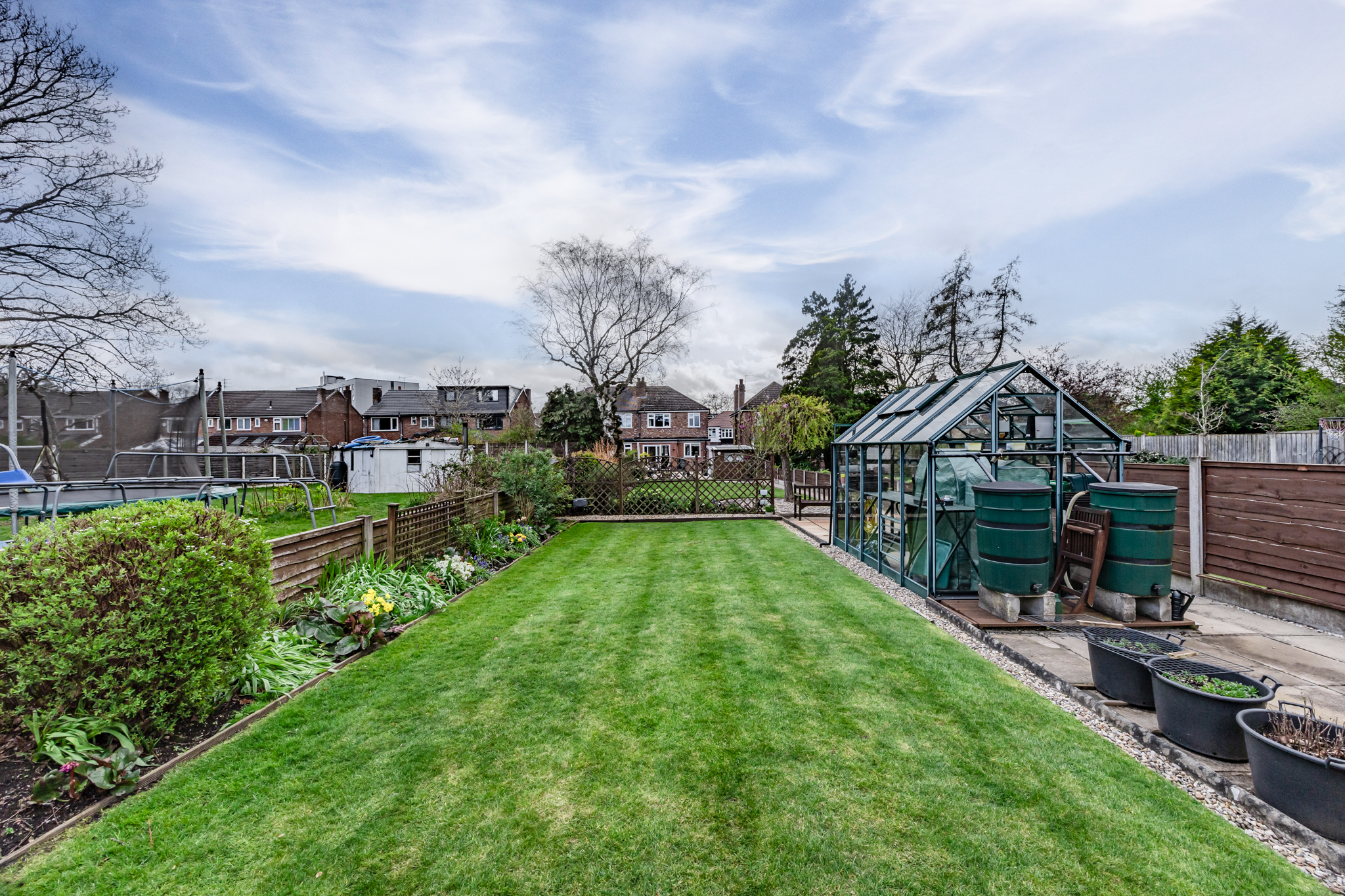 - Stunning, long rear garden with greenhouse and mature planting