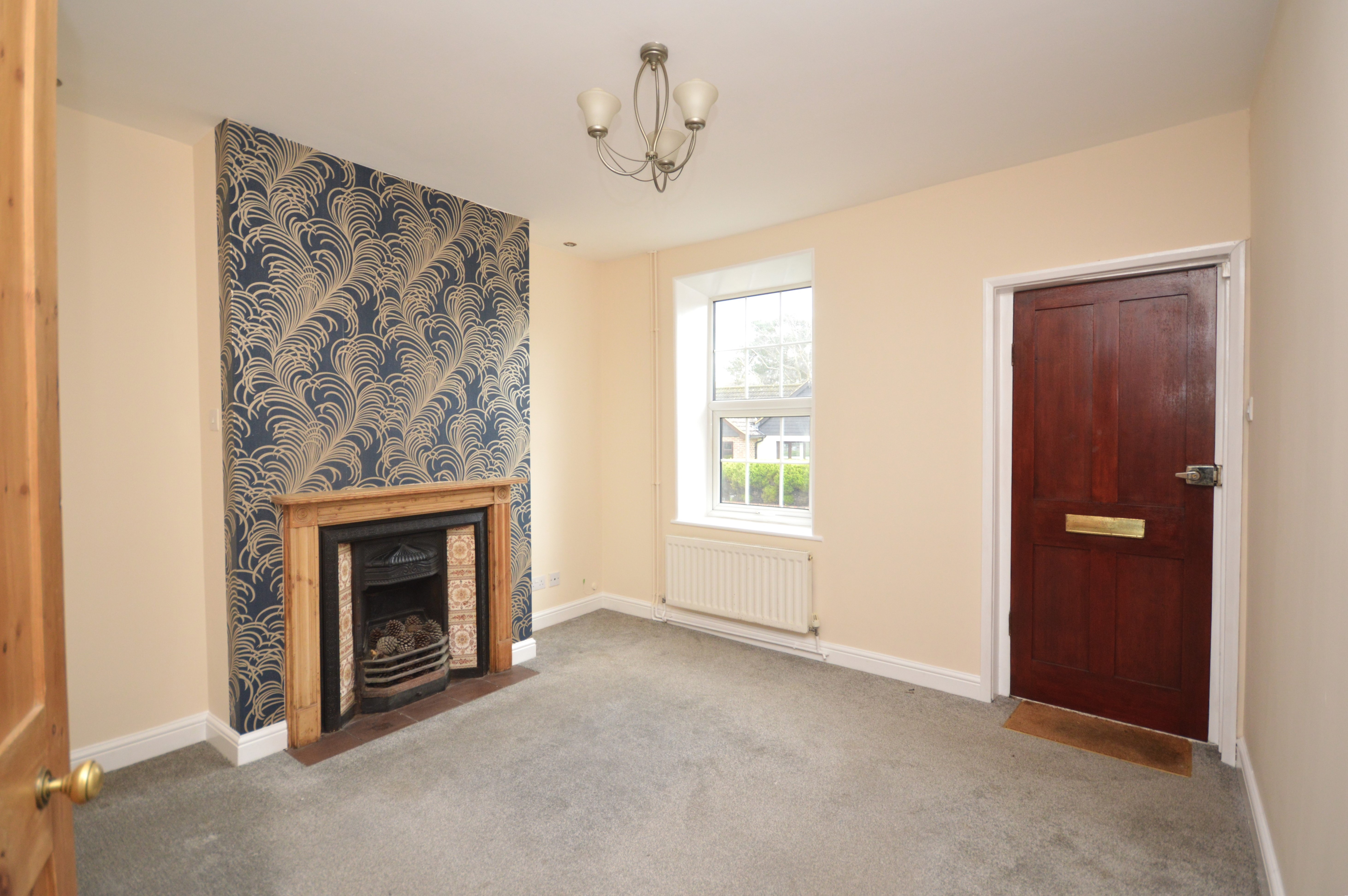 Solid wooden front door. UPVC double glazed window to the front. Carpeted floor coverings, radiator and beautiful open plan fireplace with fire surround. Doorway To :-