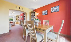 The property boasts a handy porch into a welcoming entrance hall leading into a generously sized dual aspect lounge, which seamlessly flows into an open dining area, creating an inviting space for entertaining and family gatherings. The large kitchen is well-appointed with plentiful cupboard and storage options, ample room for appliances, and enjoys a stunning outlook to the rear, providing a bright and pleasant environment for every-day living. On the ground floor, the property also benefits from a substantial single garage (complete with power and lighting) which incorporates a convenient downstairs WC and leads to a versatile conservatory at the rear. This additional living space overlooks the countryside, offering flexibility for use as a playroom, home office, or relaxation area.