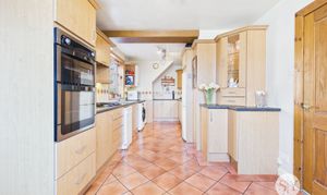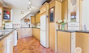 Range of fitted wall and base units with contrasting worksurfaces, sink and drainer, integral single oven with separate grill, gas hob, plumbed for washing machine, plumbed for dishwasher, space for fridge freezer, space for tumble dryer, Karndean tiled flooring, combi boiler, panel radiator, upvc double glazed windows x2