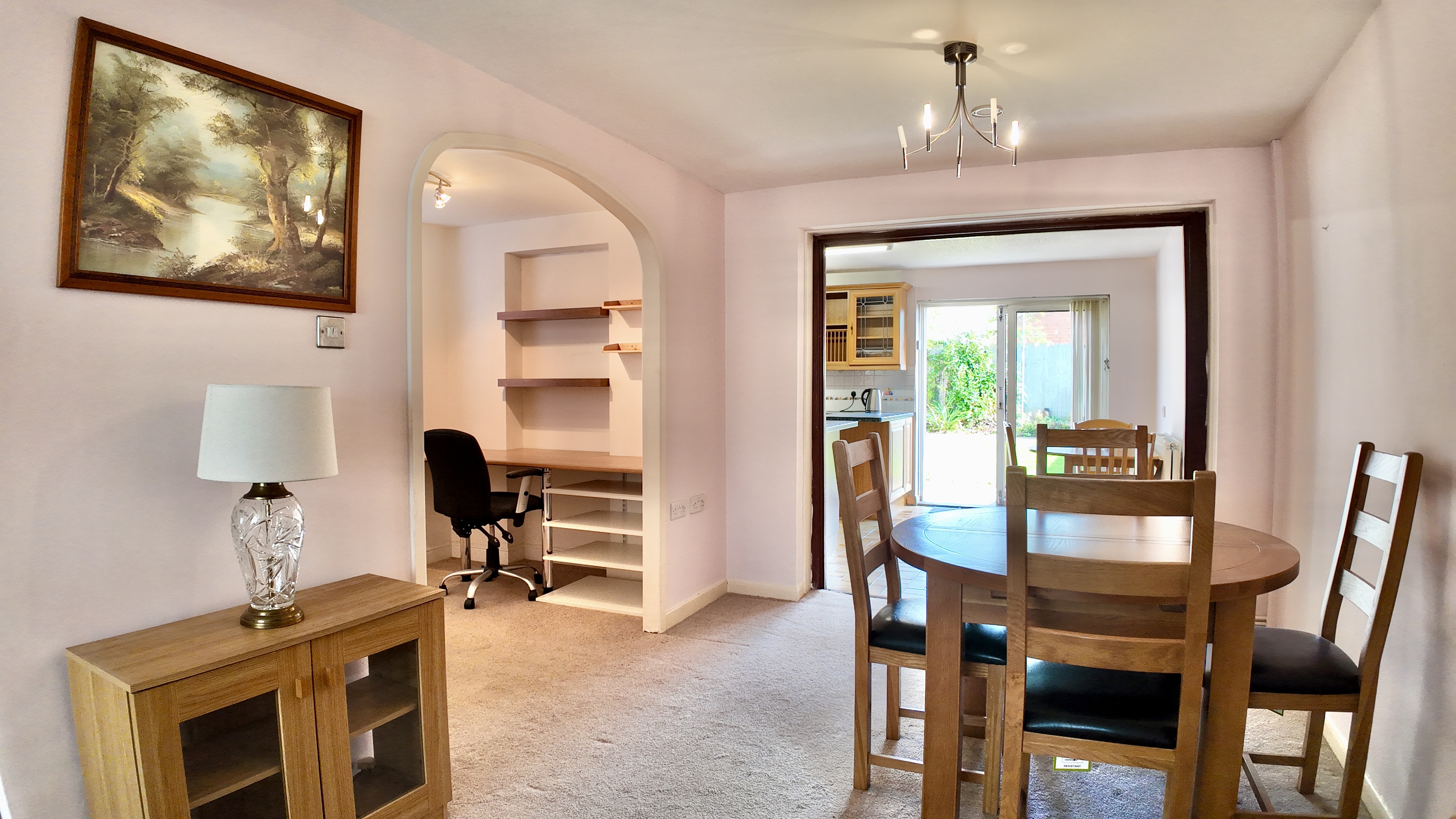 The heart of this home lies in the gorgeous kitchen diner located to the rear of the property. With ample space for dining and cooking, this tastefully decorated area is perfect for hosting gatherings or enjoying a quiet morning with a cup of coffee while overlooking the lawned rear garden.