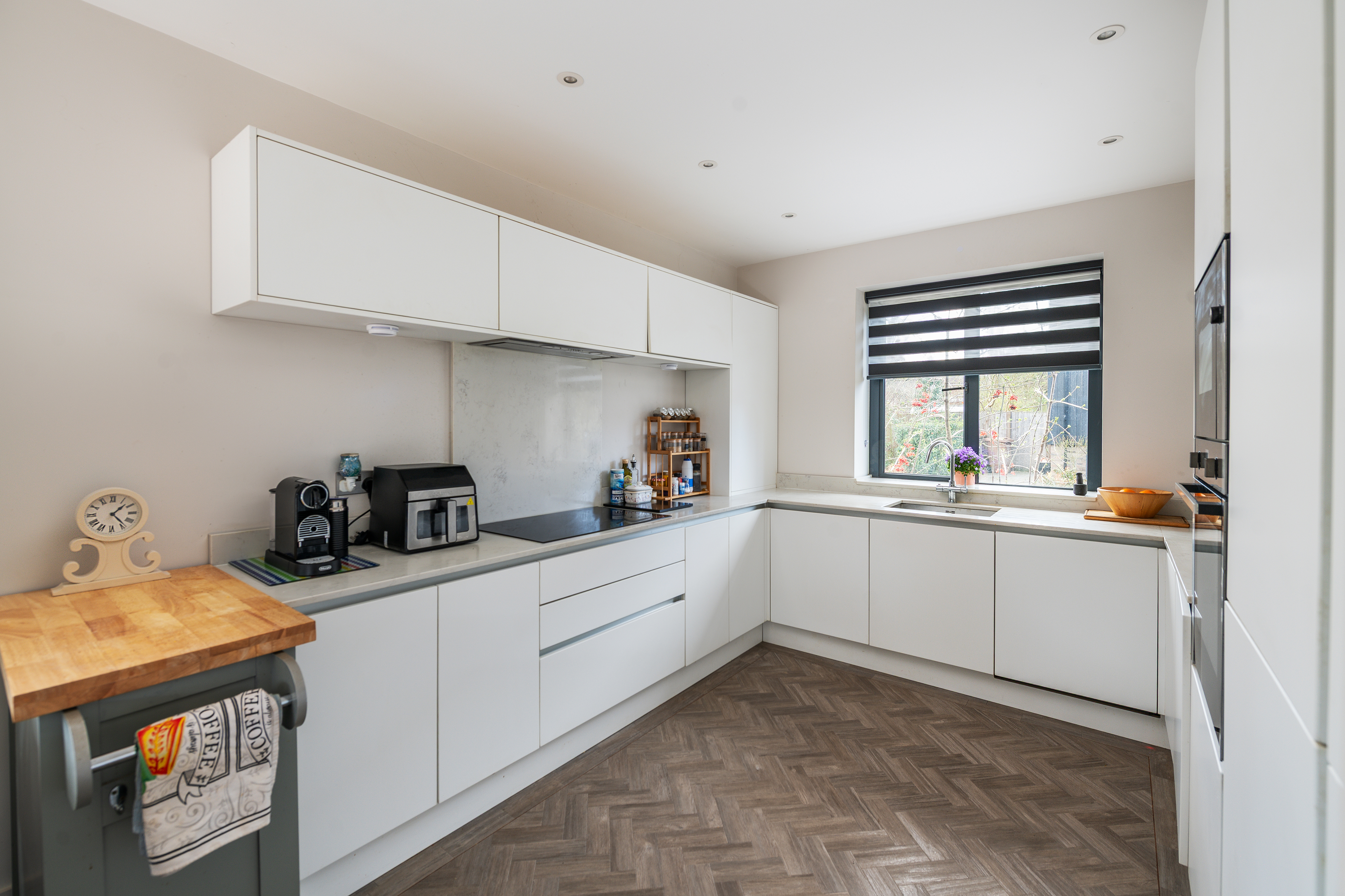 The property boasts a south west facing garden, offering a sunny and private outdoor space ideal for summer entertaining or relaxing with family and friends. There is excellent potential to extend the property, subject to the necessary planning permissions (stpp), providing scope to further enhance the living accommodation if desired. The garden is securely enclosed, making it a safe environment for children and pets. Mature planting borders the lawn, creating a pleasant and established outlook. The gated cul-de-sac setting ensures a peaceful atmosphere with minimal traffic, while the off-road parking and EV charge point add to the home’s convenience and appeal. This property combines modern living with excellent outdoor space, all within a sought-after location close to local amenities and transport links.