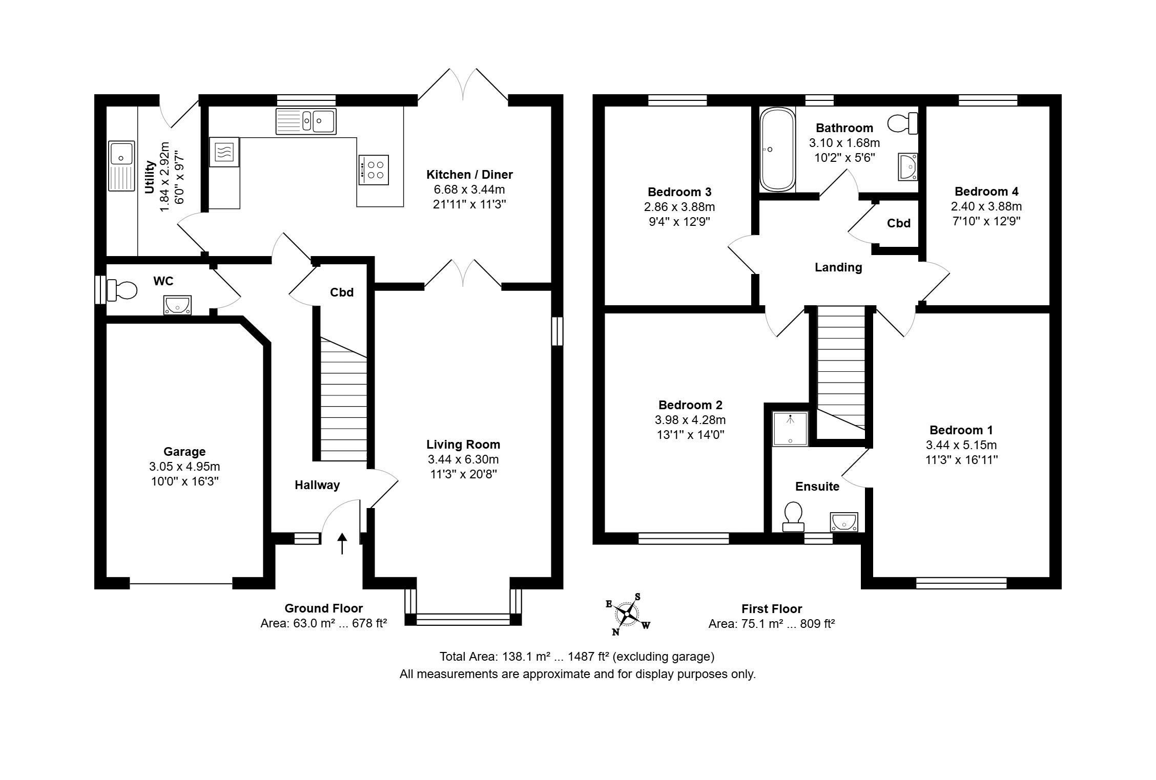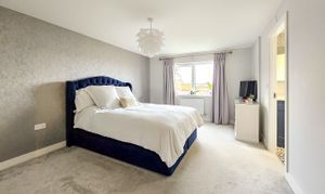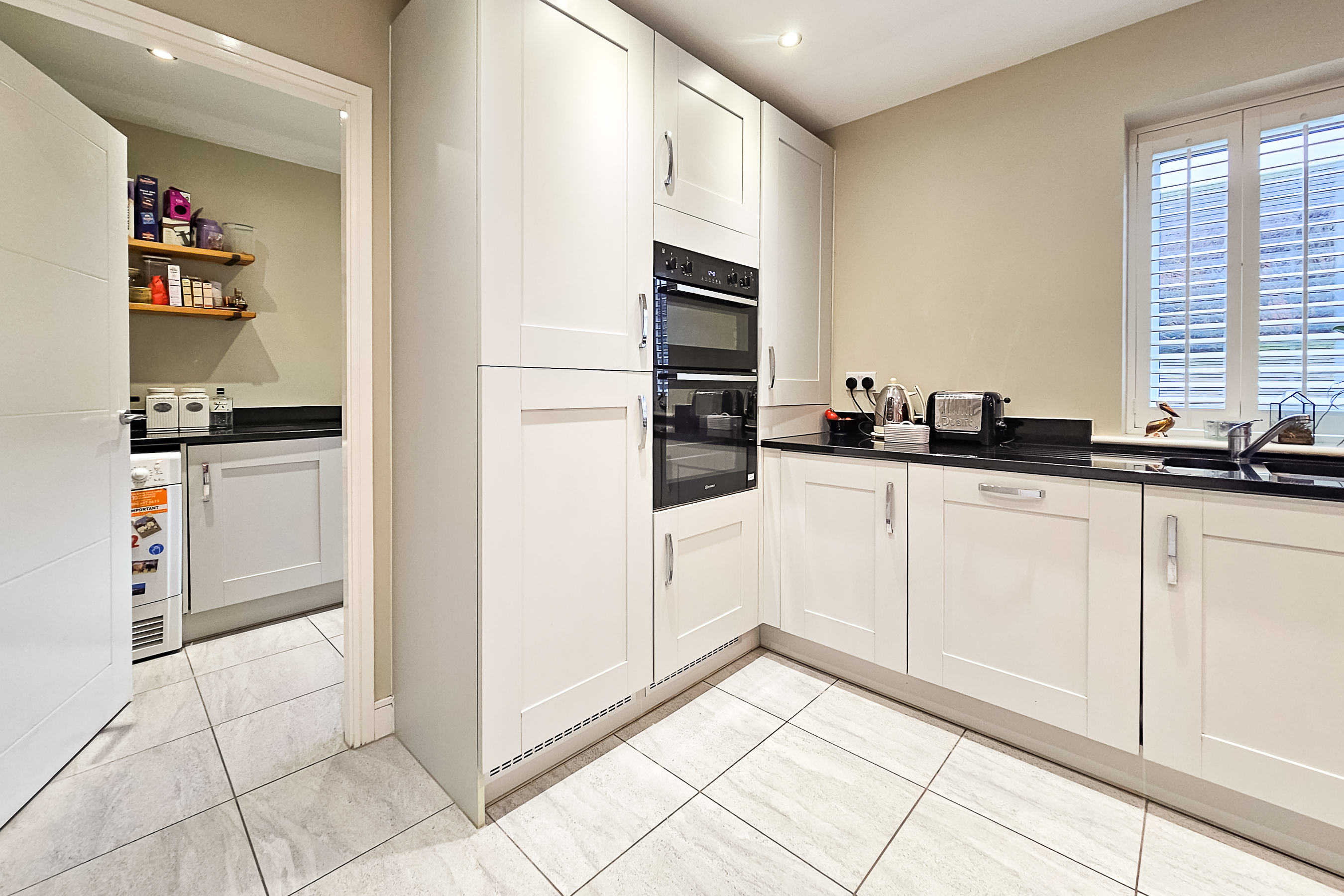 Upstairs, the landing leads to four bright and well-proportioned double bedrooms, with the principal bedroom benefitting from a modern en-suite shower room. The remaining bedrooms are served by a contemporary family bathroom with a bathtub, and the first floor is completed by a generous landing storage cupboard.