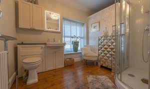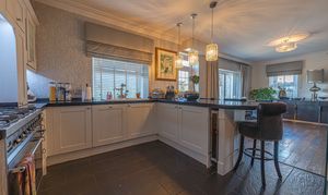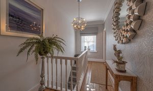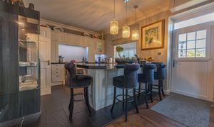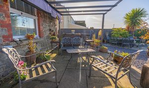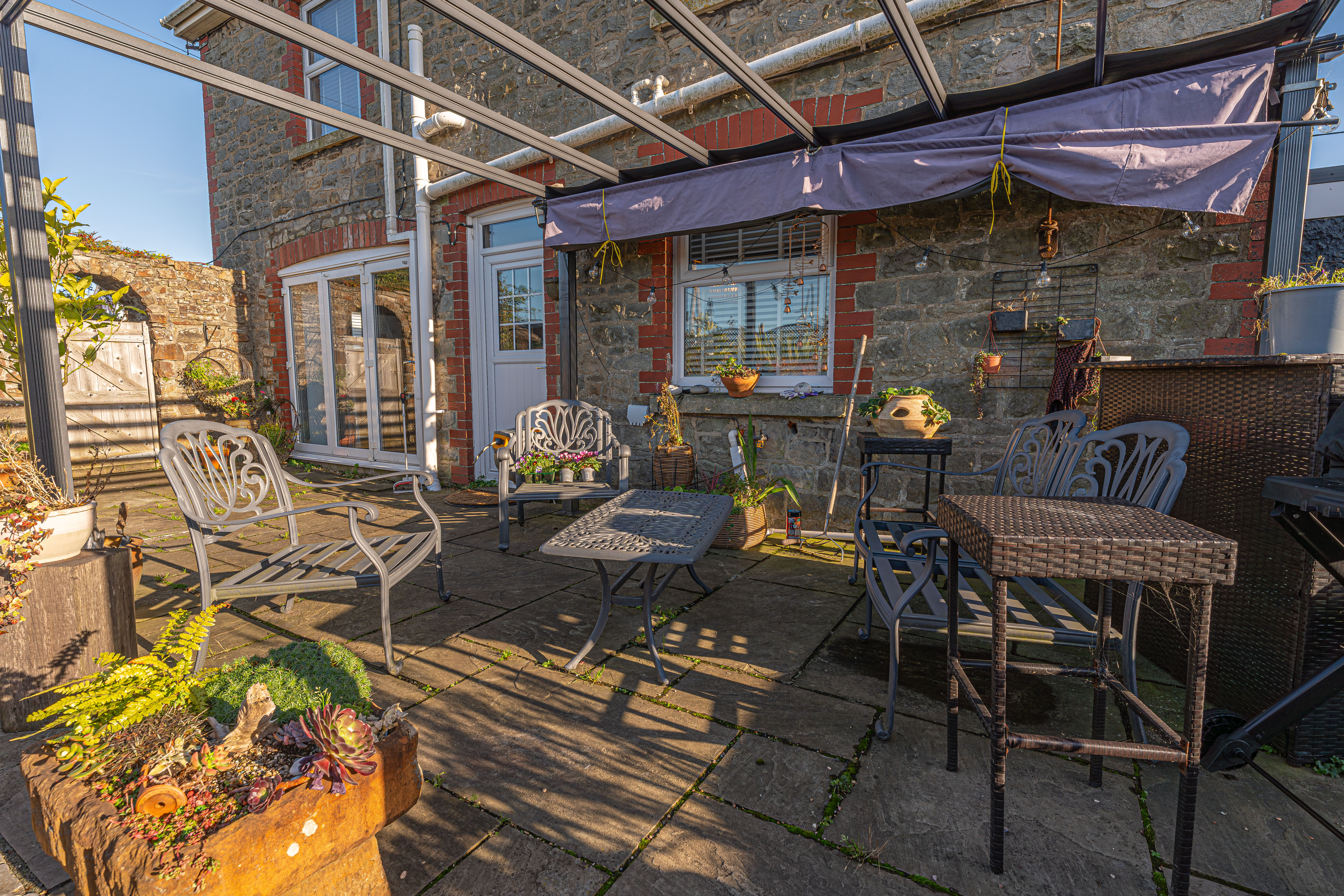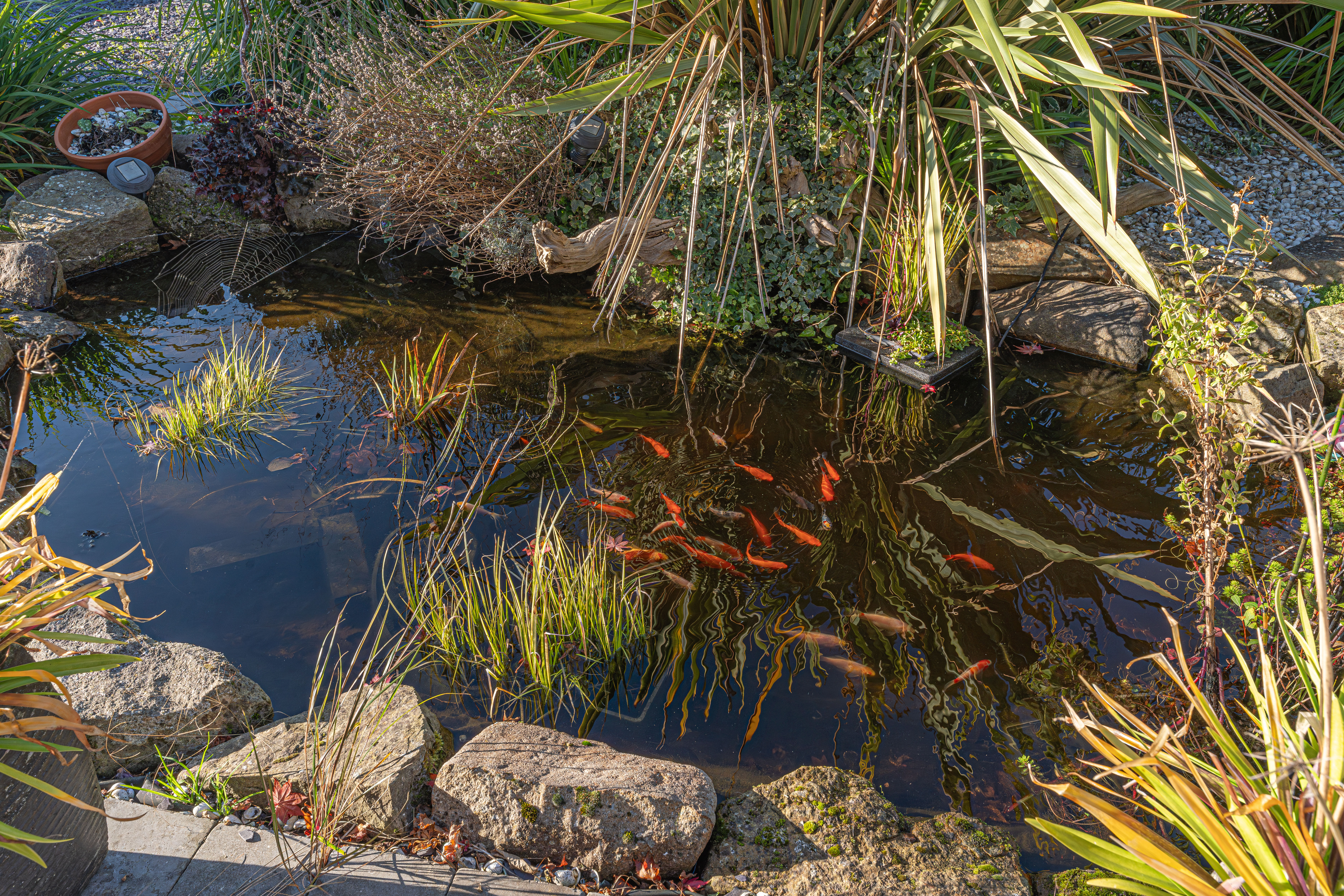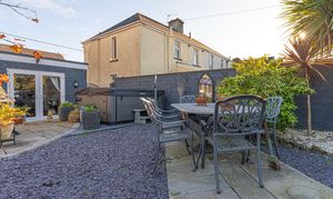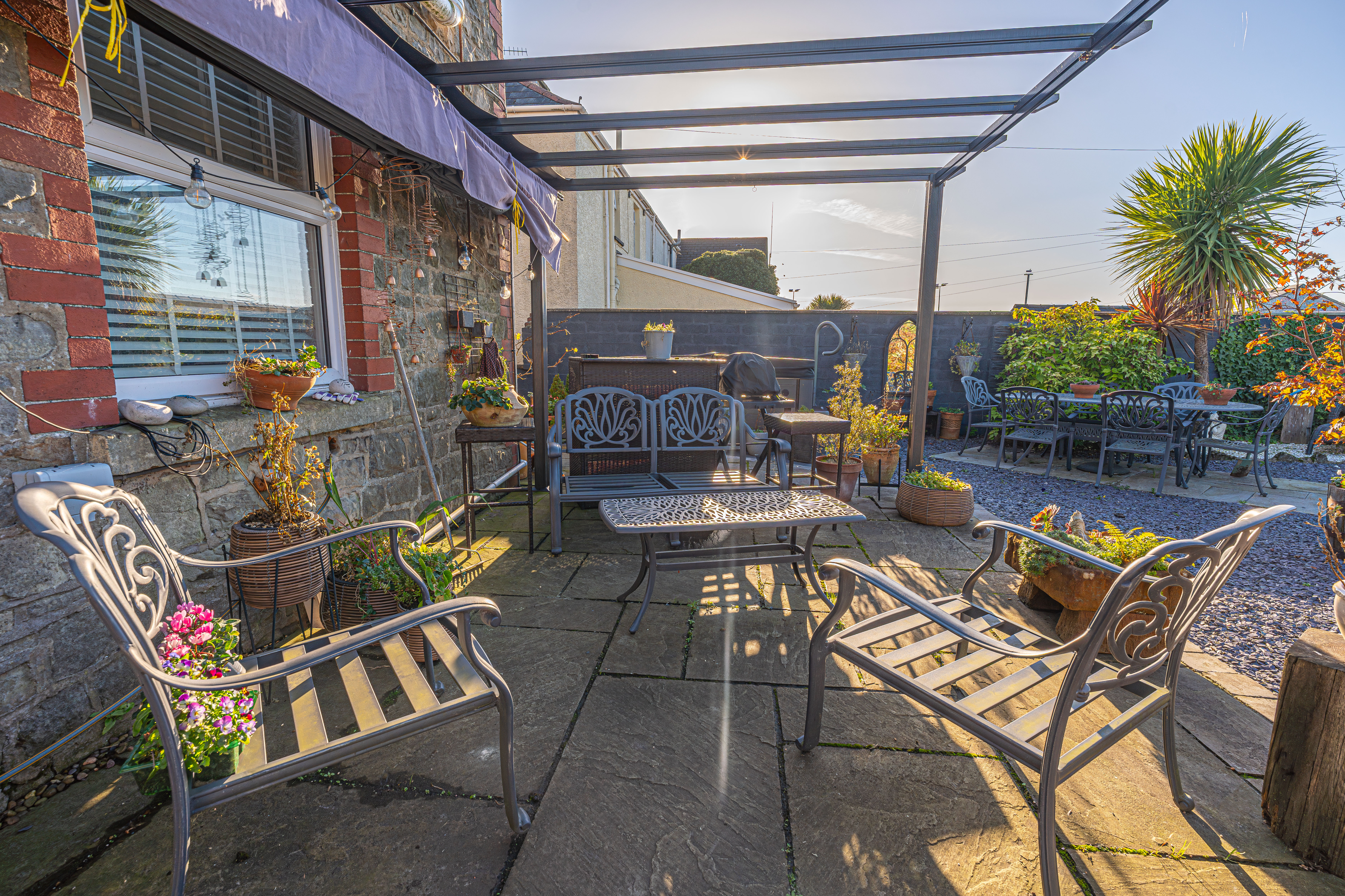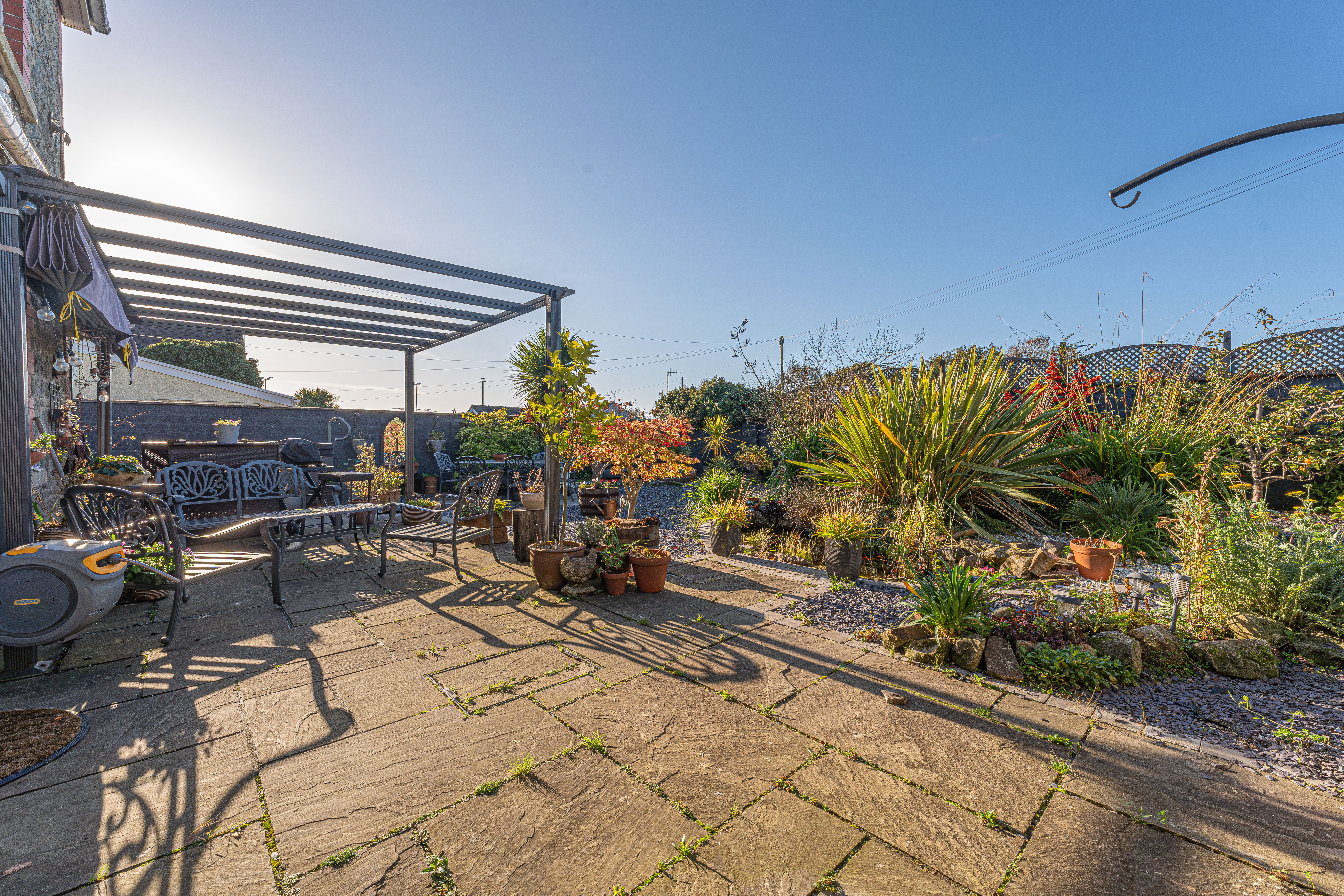 As we step outside, we find a spacious garden perfect for relaxation and entertaining. The main area at the rear features a beautifully landscaped garden with a large patio and sheltered pergola. Additional highlights include a summerhouse, breeze house, greenhouse and a fishpond surrounded by various flowers and shrubs. The Summerhouse will not be included within the sale of the property. There's also a spacious lawn and patio on the side of the house, along with convenient off-road parking at the front.