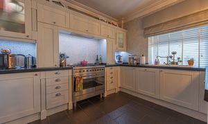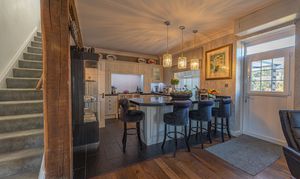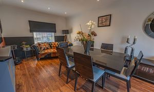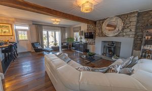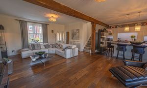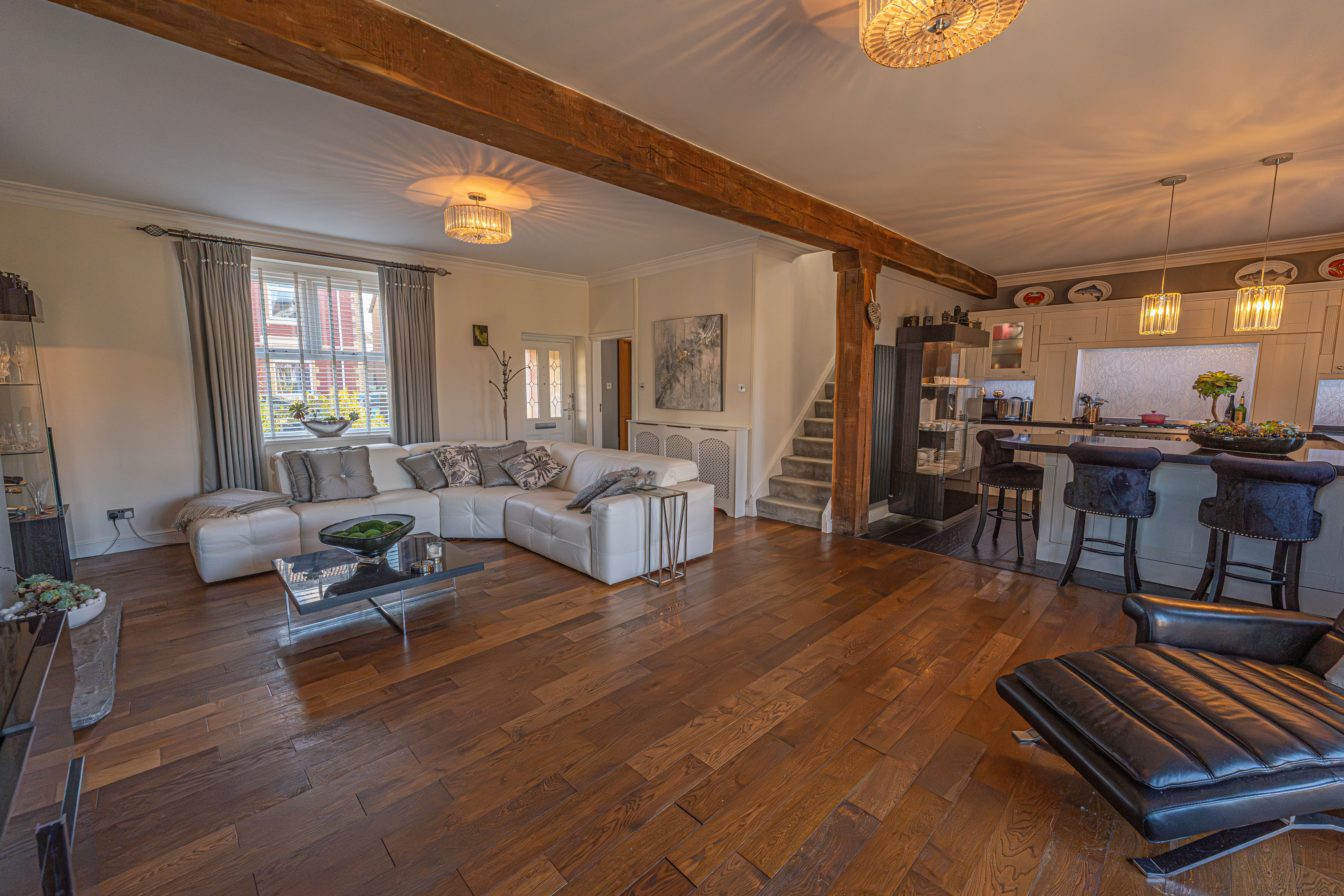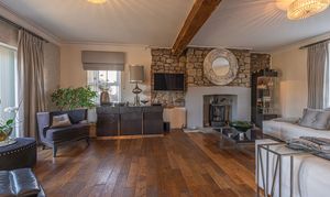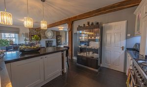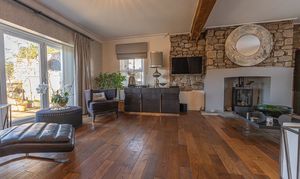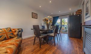 This stunning house combines original period features, like exposed beams and a stone facade, with modern living standards. Upon entering, you're greeted by a spacious reception room with an open plan design, ideal for lounging and entertaining, featuring hardwood floors, an exposed brick fireplace, and triple aspect windows that bring in natural light. The adjoining kitchen offers ample storage and integrated appliances, along with a cosy breakfast bar. The former garage serves as a dining area with garden access, and a versatile front reception room can function as a home office or fourth bedroom. Upstairs, there are three generous bedrooms; the principal bedroom includes an en-suite bathroom, while the other two share a sleek family bathroom with a walk-in shower.