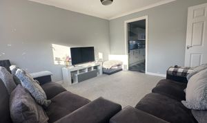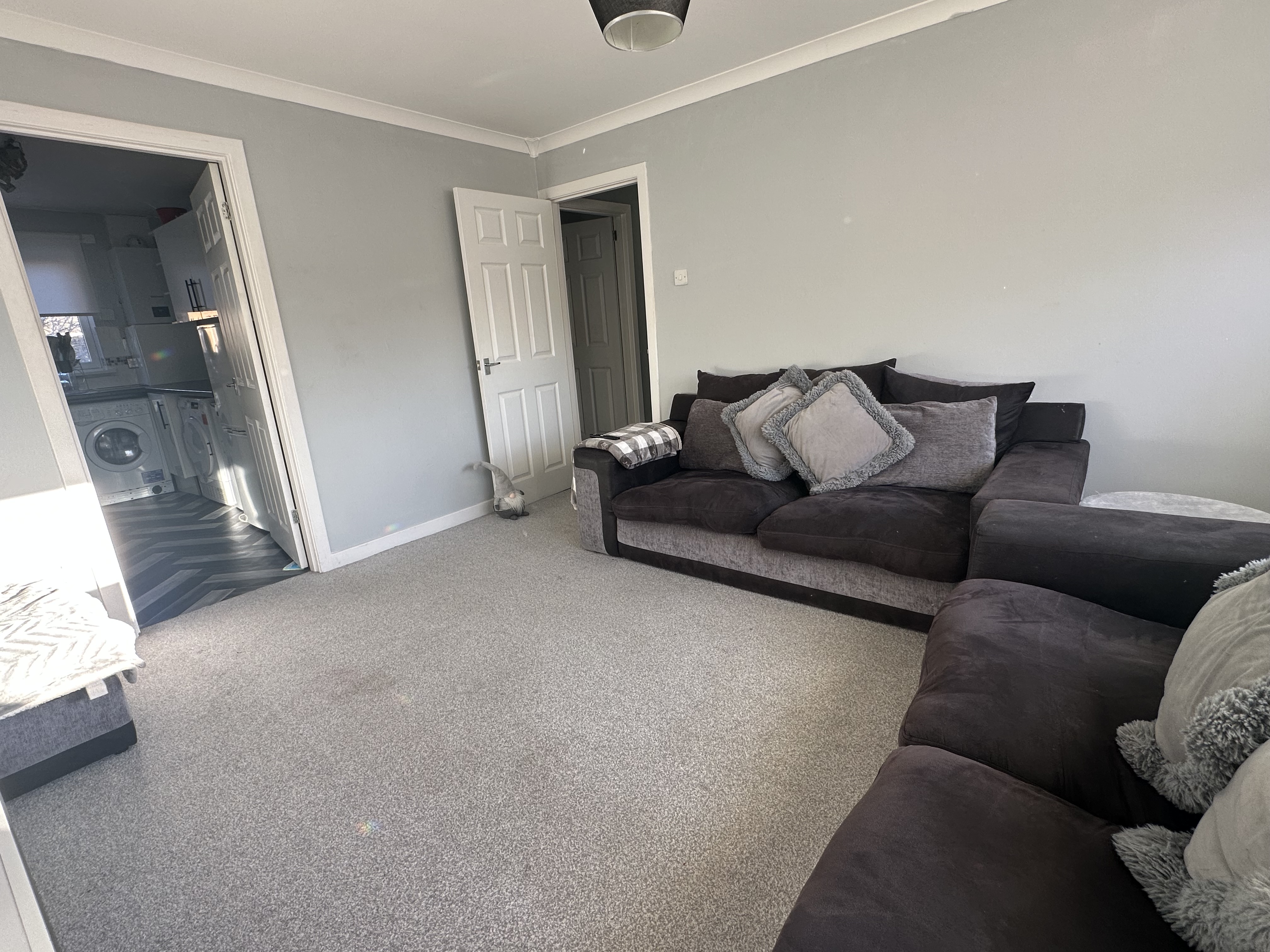 Upon entering, you are welcomed into a generously proportioned lounge, which is enhanced by a large double glazed window to the front that floods the room with natural sunlight. The lounge features neutral decor and is fully carpeted, creating a warm and inviting atmosphere ideal for relaxation or entertaining guests.