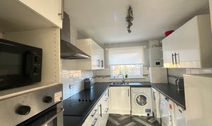 - Modern fitted kitchen with a range of wall and floor mounted units with matching wipe clean surface, double glazed window formation to the rear