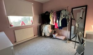 The second double bedroom is situated to the front and features a built-in cupboard for convenient storage, double glazed window, neutral tones, and carpeting.