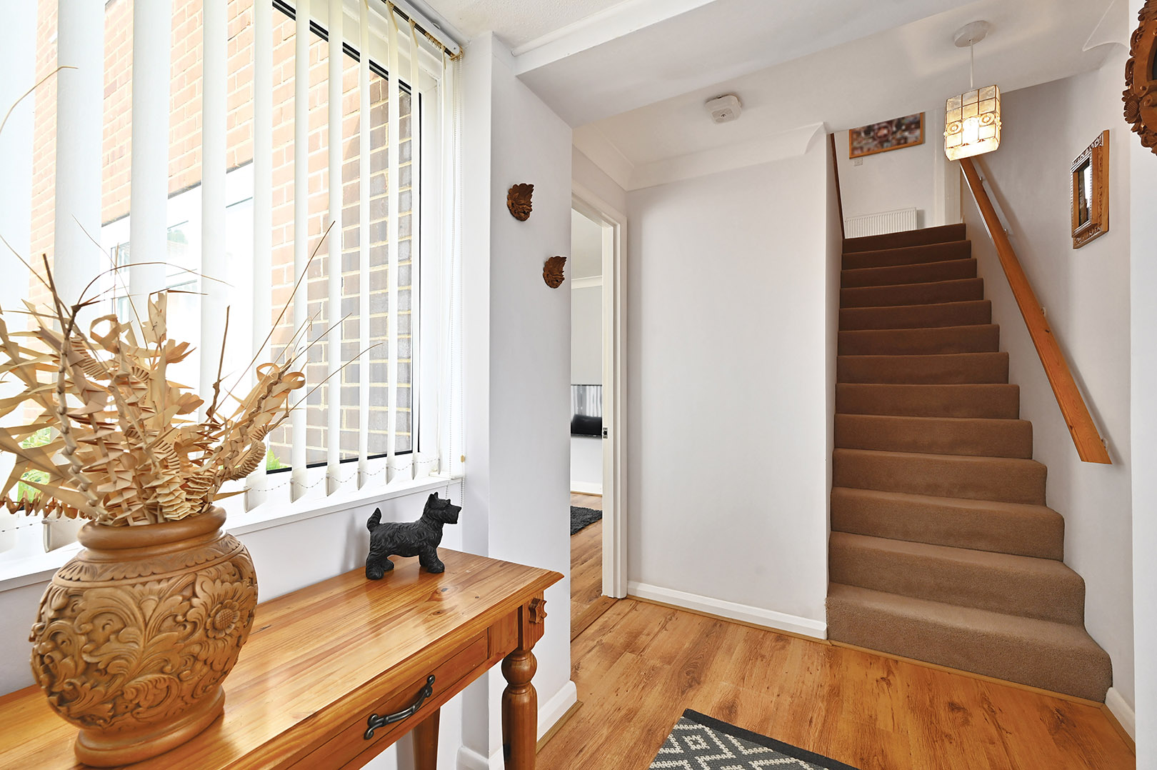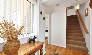 With stairs leading to first floor window to side and doors leading to ground floor shower room and lounge.