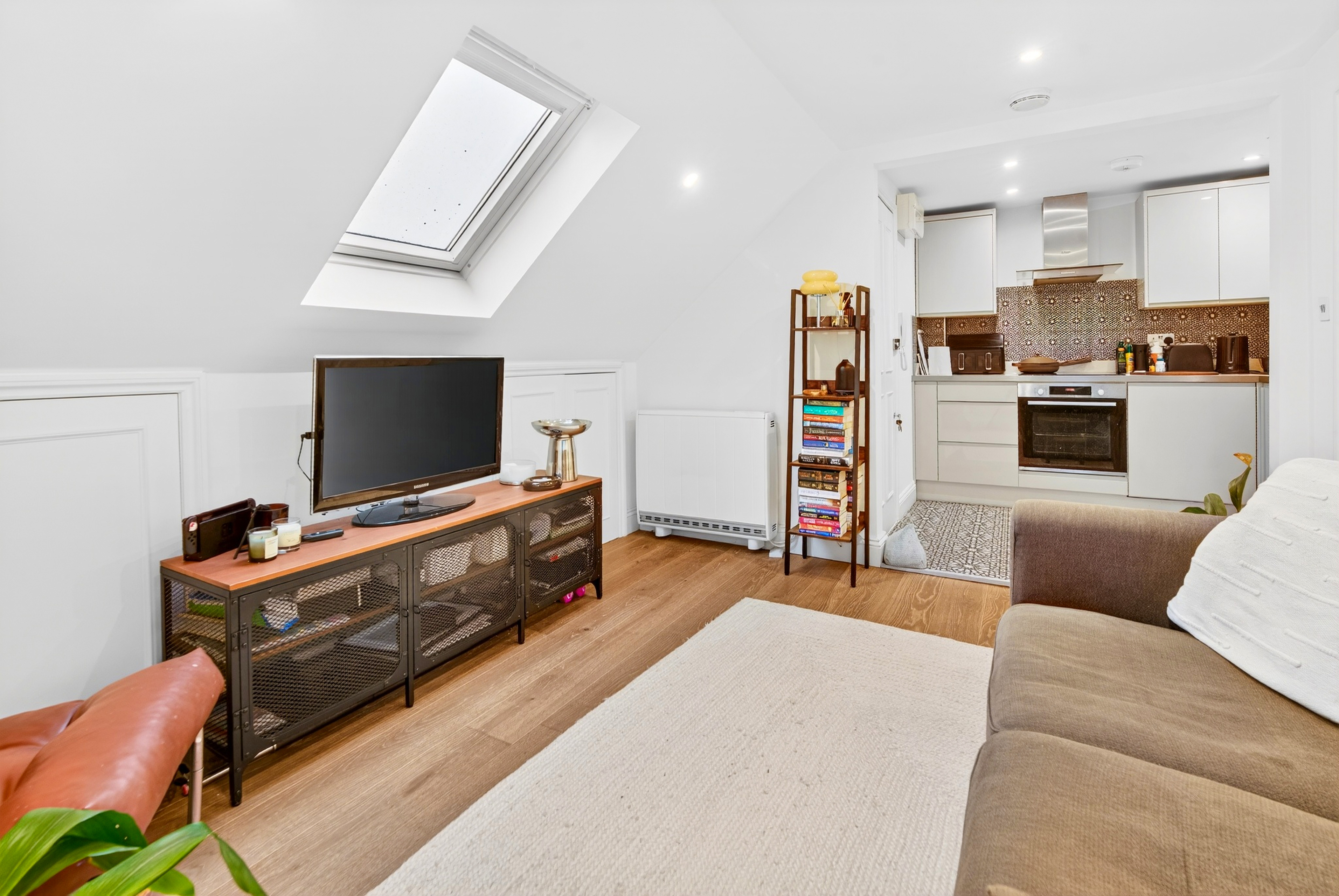 37 Sq.meters in size PLUS bonus extra space of approximately 8 sq.meters of under eaves storage under 1 meter, making the flat appear larger.