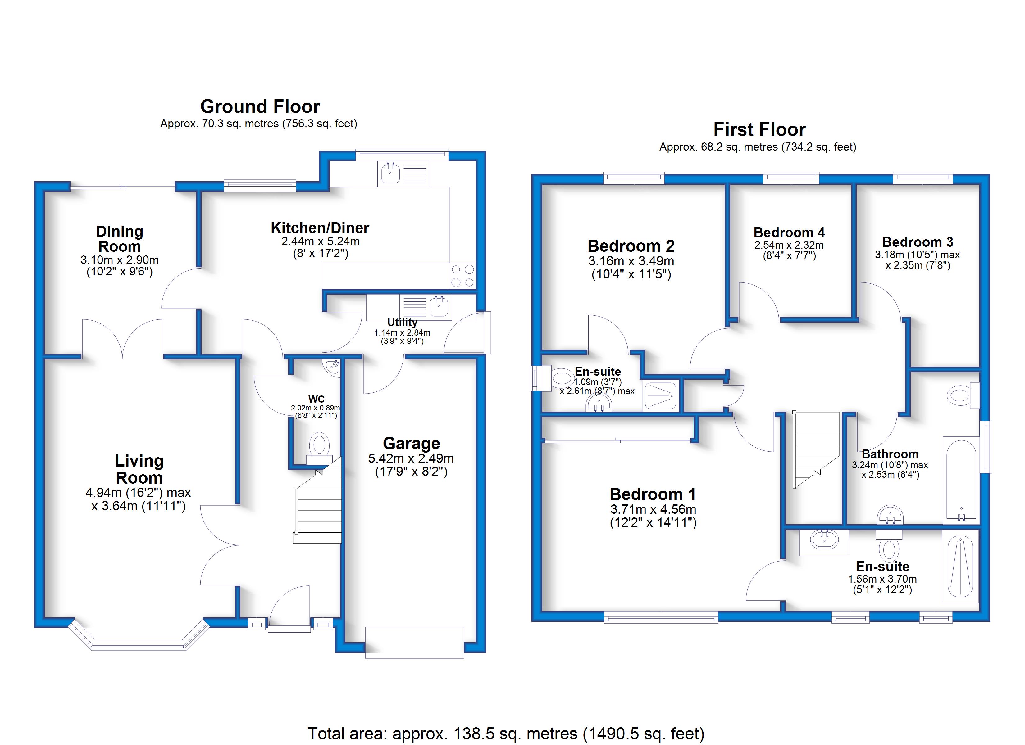 The welcoming entrance hallway sets the tone for the home’s warm and spacious feel. Two versatile reception rooms provide plenty of space for both relaxed evenings with the family and entertaining your friends, with the bay window in the front room and patio doors to the rear, the rooms are flooded with natural light. The kitchen-diner is a great space, with plenty of room for a large dining table making this a great social space to enjoy mealtimes! The separate utility room keeps laundry out the way as well as being the perfect space for extra storage. From here you can access both the integral garage and the side pathway into the garden! There is also a handy downstairs WC.