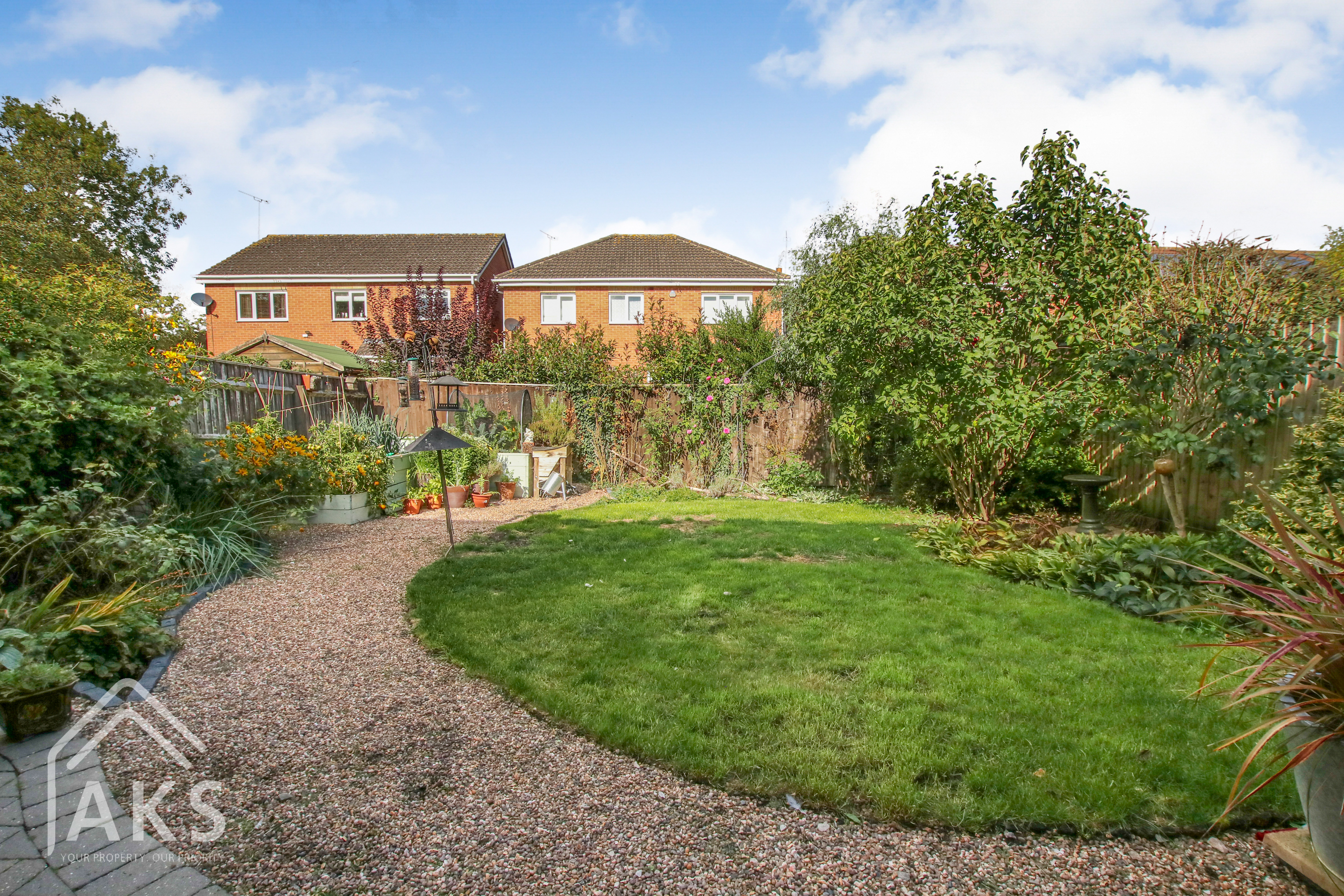 The garden is a lovely space, with sliding doors leading you out from the dining room onto the seating area, perfect for morning coffee. The pebbled path is a great feature, leading to the mini vegetable patch at the back of the garden. With a spacious lawned area and plenty of room for storage too, this is a great extension of the home”.
