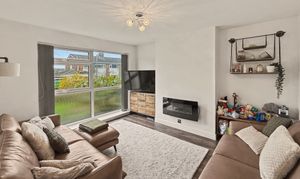 The accommodation briefly comprises a porch, welcoming entrance hallway, and a bright, attractive lounge featuring a floor-to-ceiling window that fills the room with natural light. To the rear is a modern gloss dining kitchen, ideal for both everyday living and entertaining, with access through to a useful playroom/utility room that offers flexible additional space.