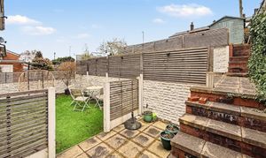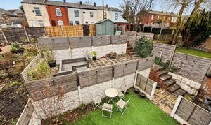 - Rear garden split into three tiers