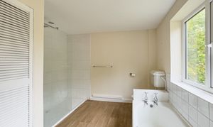 Each bedroom is thoughtfully designed, providing ample space for relaxation and rest. The property's unique character shines through with its tasteful finishes. The stunning garden adds a touch of nature, creating a serene backdrop for outdoor enjoyment.