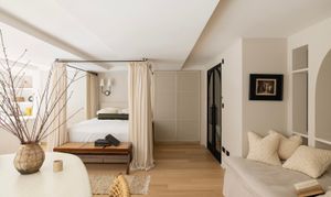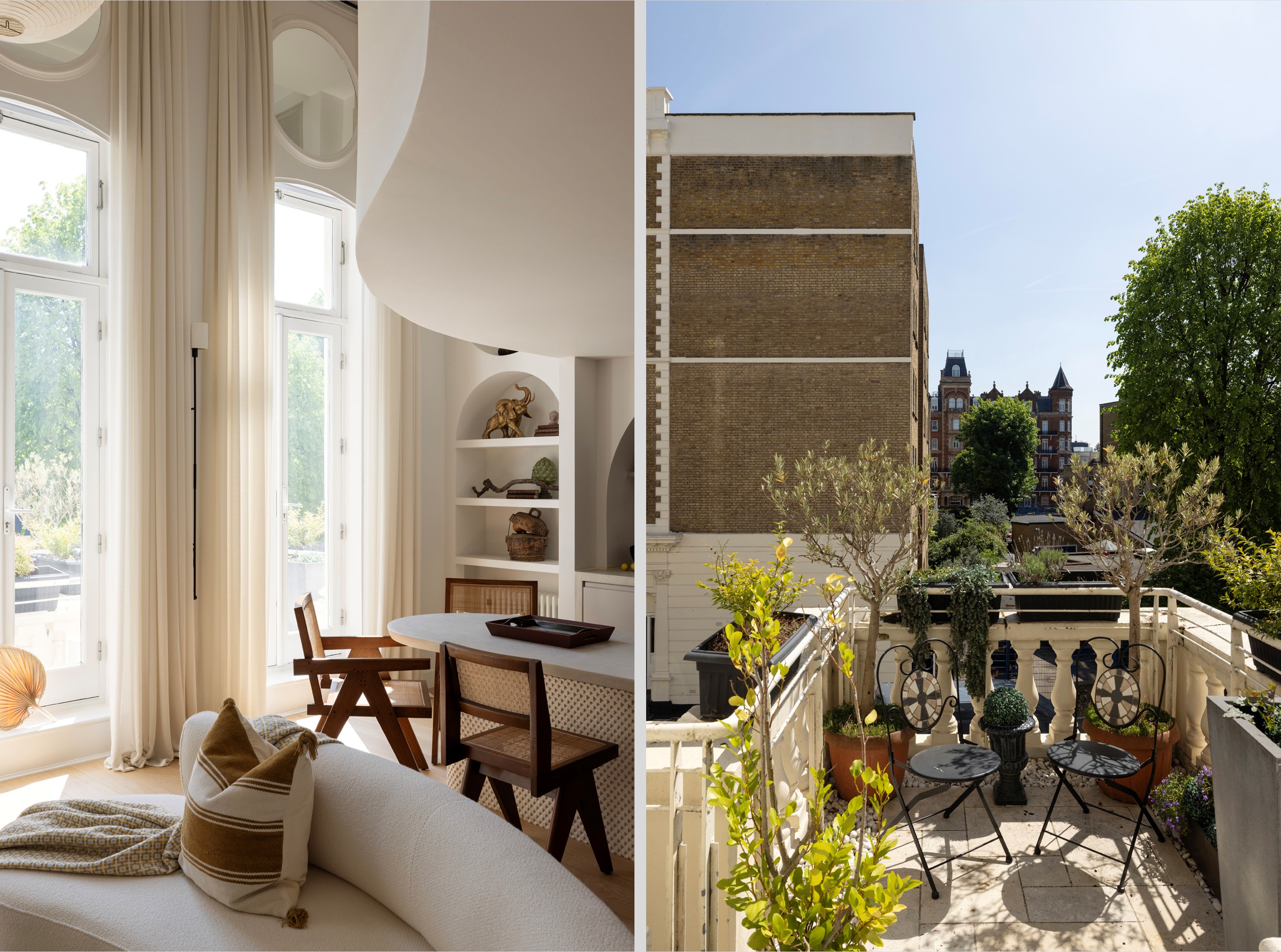 Set across two storeys within a grand period building on Earl’s Court Square, this remarkable home has been thoughtfully reimagined by the seller in collaboration with an interior designer, featuring in editorial content worldwide. The result is a serene, design-led sanctuary that speaks to both artistic expression and sustainable living. Once a featureless open-plan space, the apartment has been transformed into a home of warmth and intention.