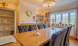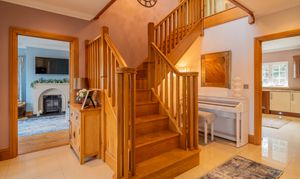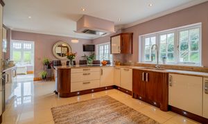 Inside, the accommodation flows effortlessly from a grand entrance hall with an oak staircase, through elegant reception rooms, a magnificent bespoke kitchen and breakfast room, and an airy conservatory opening to a substantial stone patio terrace — ideal for entertaining and enjoying the surrounding countryside. Upstairs, five beautifully presented bedrooms include a luxurious principal suite with dressing room and en suite, while a versatile annexe provides additional living space, guest accommodation, or the perfect home-office suite.