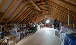 Accessed via a folding ladder, the enormous loft extends the full width of the house and benefits from lighting and power. A feature circular window provides natural light, and the space offers exceptional storage or potential for future conversion (subject to consents).