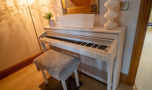 A versatile annexe area ideal for multi-generational living, guests, or home working. The main room enjoys three large Velux windows plus a double-glazed window overlooking the paddock, engineered oak flooring, and radiator heating.