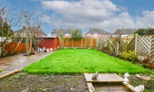 Outside, the front garden is mainly laid to lawn with a fenced boundary. The south-facing rear garden enjoys plenty of sunlight and includes a patio seating area leading to a raised upper patio, lawn and established flower beds. A block-paved driveway provides off-road parking and leads to a garage with an up-and-over door.