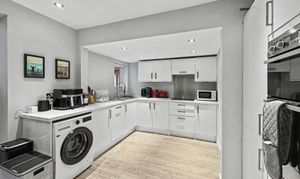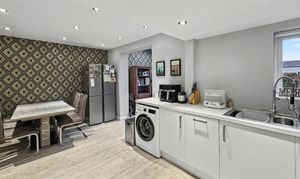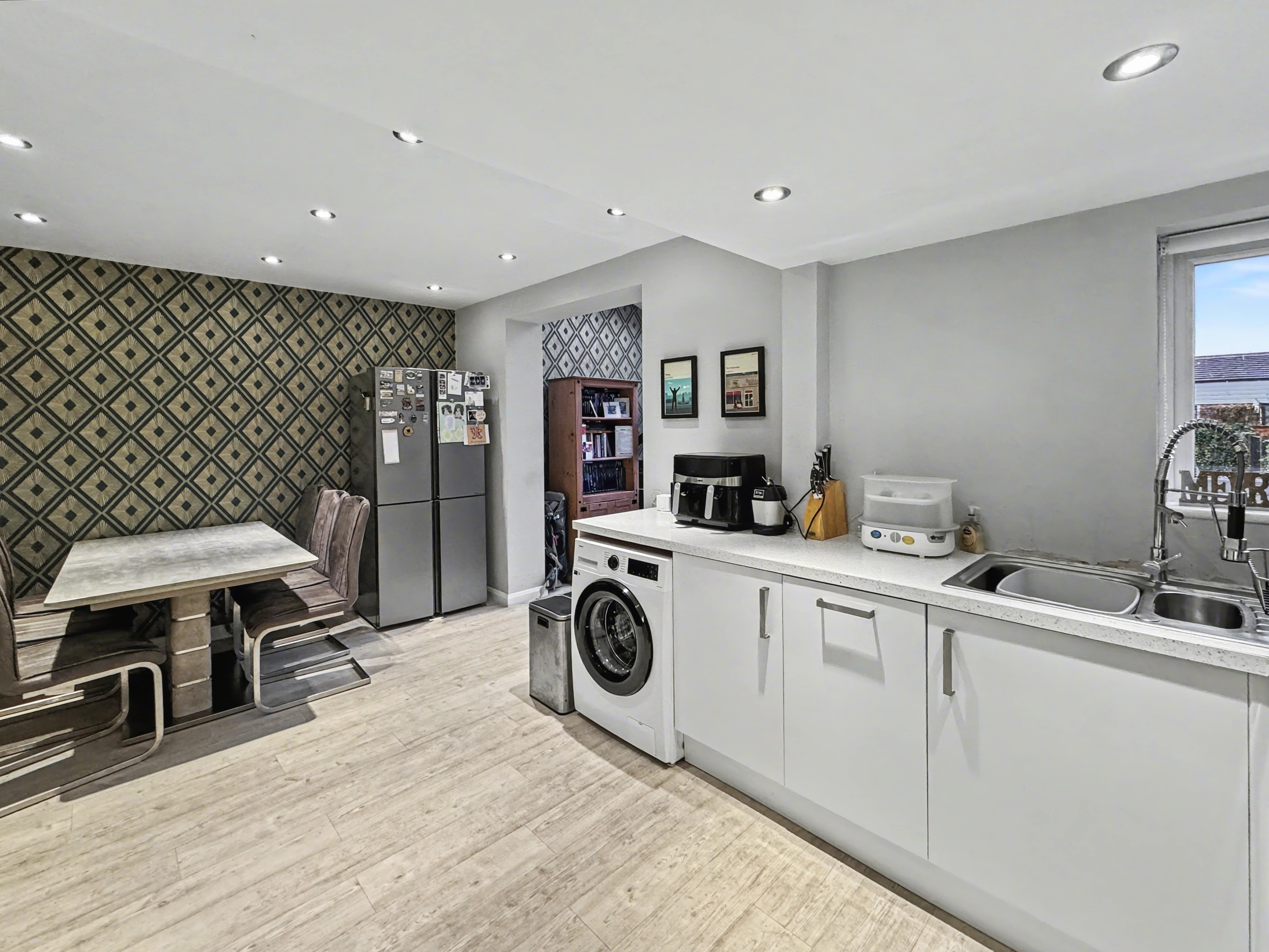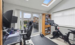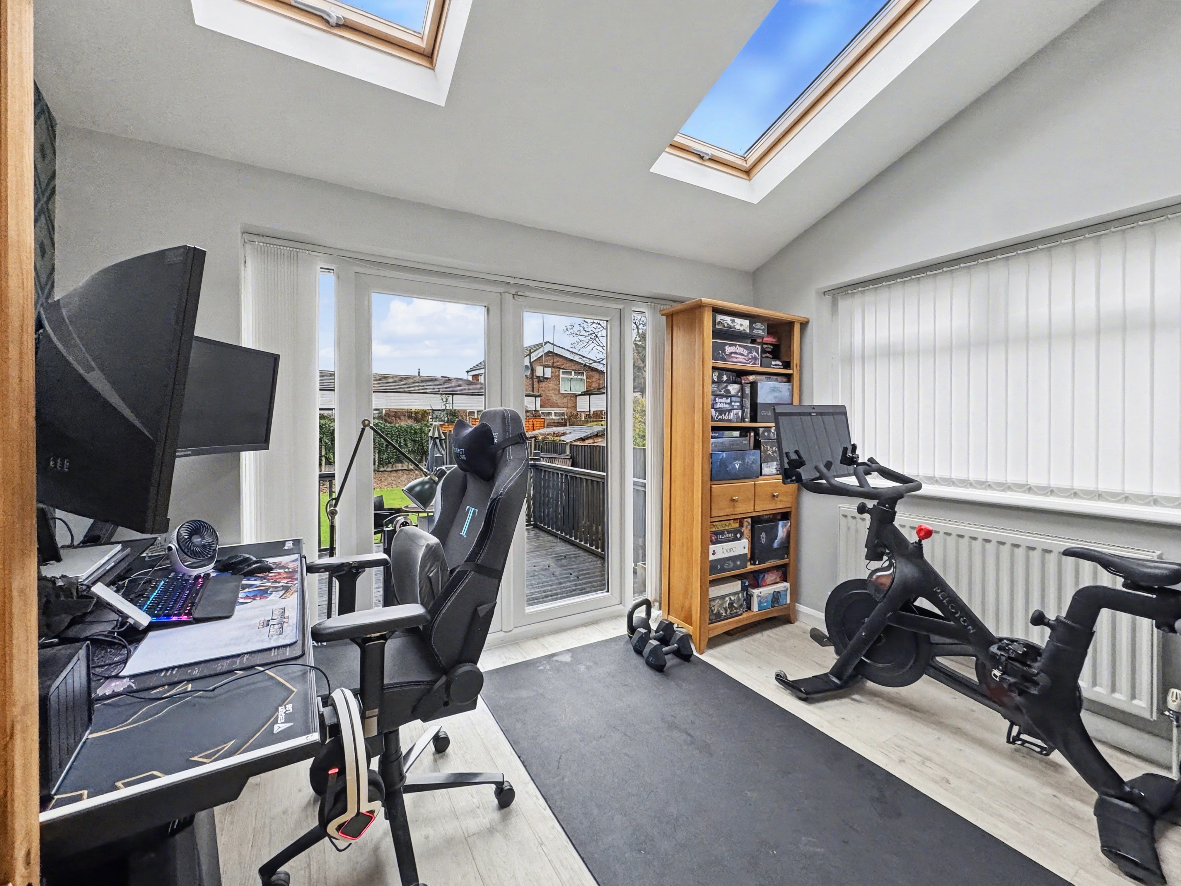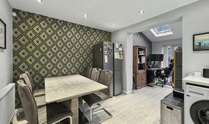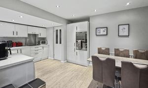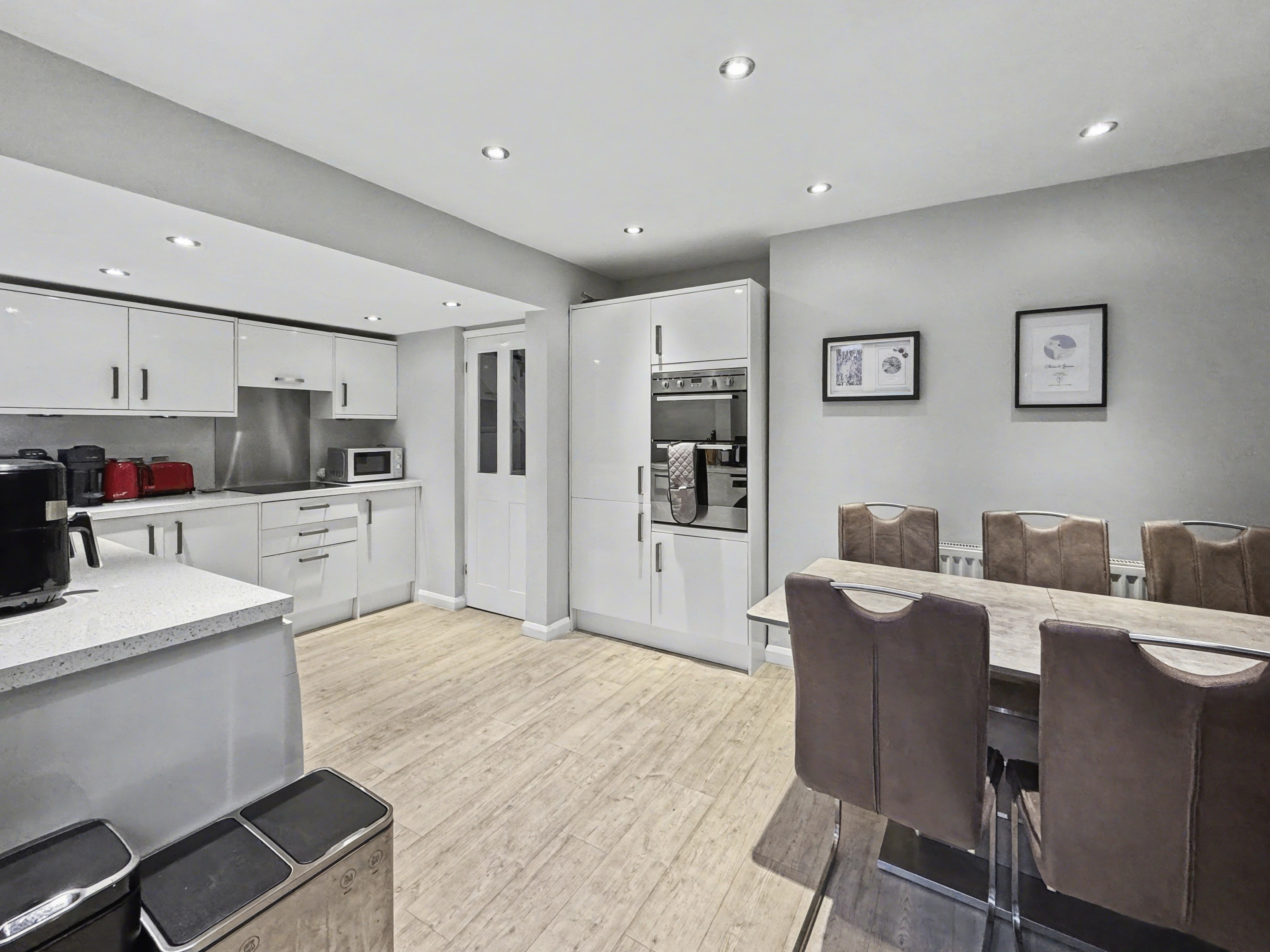 To the front of the property, the welcoming lounge is flooded with natural light thanks to its large bay window, creating a bright and comfortable space to relax. The true heart of the home is the impressive open-plan kitchen and dining area, designed for modern living and ideal for both everyday family life and entertaining. This flows seamlessly into a second reception room overlooking the garden, a highly versatile space that could be used as a snug, home office, or playroom.